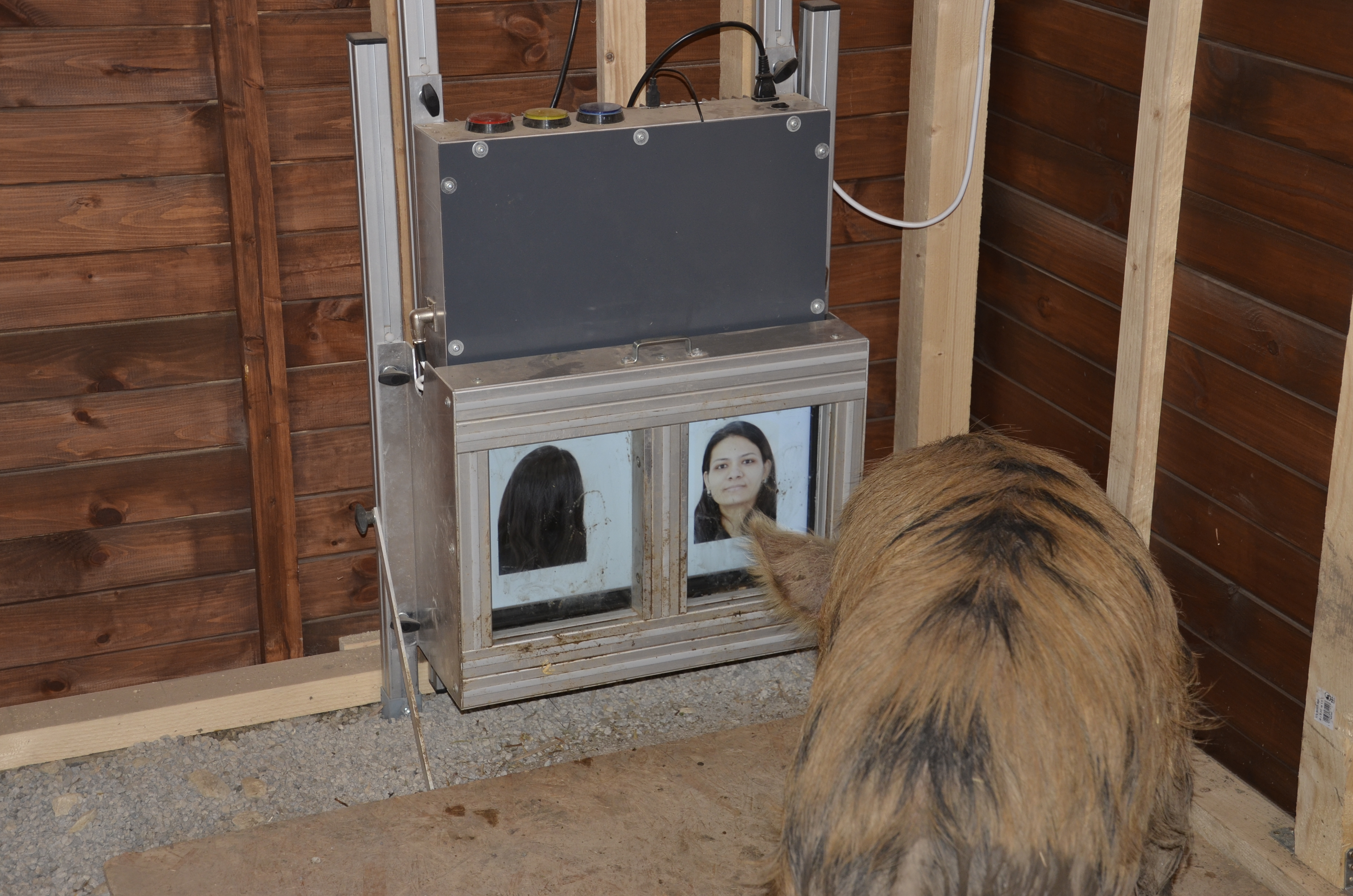 In a first step, two groups of pigs were trained to discriminate between the front and back of the head of ten persons. Contrary to previous trials, the pigs were shown only photos on a monitor. The subjects received a reward if they chose either the front or the back view, depending on the group. “It was important for us that the pigs focus exclusively on two-dimensional features. In this way, we could control for the previously demonstrated three-dimensional perception of pigs as well as for olfactory factors. The experiment thus challenged only the pigs’ visual discrimination, which had previously been considered not especially developed,” explains study director Ludwig Huber.