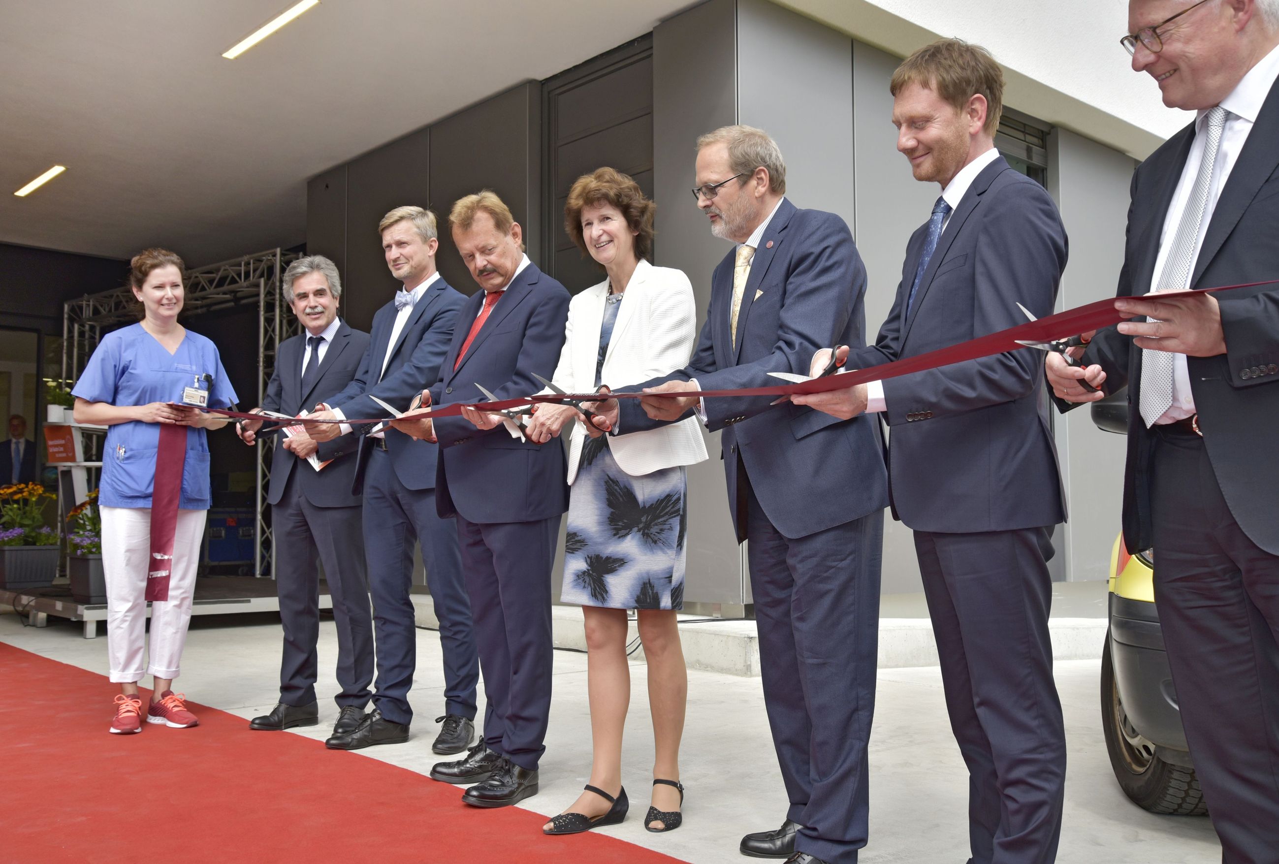 Am heutigen Dienstag (21. August) wird in Gegenwart des Sächsischen Ministerpräsidenten Michael Kretschmer der Erweiterungsbau des Chirurgischen Zentrums feierlich eingeweiht. Der Freistaat Sachsen und das Universitätsklinikum Carl Gustav Carus Dresden investieren 111 Millionen Euro in Bau und Ausstattung des Gebäudekomplexes. Das in Eigenregie des Uniklinikums errichtete fünfstöckige Haus mit einer Nutzfläche von rund 11.000 Quadratmetern beherbergt 17 hochmoderne OP-Säle, eine Chirurgische Notaufnahme, einen Ambulanzbereich, eine Intensiv- und vier weitere Pflegestationen sowie eine leistungsstarke Zentralsterilisation. Der Komplex gehört damit zu den modernsten OP-Zentren Europas.