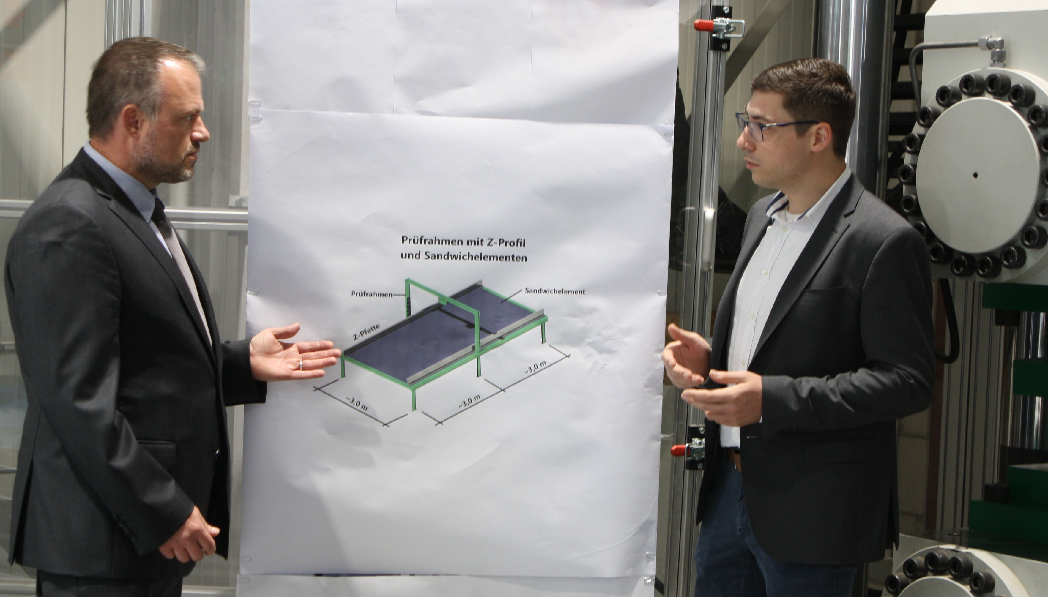 Ein Student am Fachbereich Bauwesen der THM hat das Tragverhalten dünnwandiger Kantprofile in Verbindung mit Sandwichelementen per Simulation in seiner Masterarbeit untersucht. Er konnte nachweisen, dass auch bei Windsogbedingungen eine gewisse stabilisierende Wirkung durch die Sandwichelemente möglich ist. Daran knüpft das aktuelle Forschungsvorhaben an. Auf die theoretische Analyse folgen nun praktische Versuche mit Großbauteilen an einem eigens eingerichteten Prüfstand. Ziel ist es, durch die gewonnenen Erkenntnisse ein europaweit gültiges Berechnungsmodell zu besagten Anwendungszwecken präzise vorzubereiten. Positive Folgen wären eine durchgängig leichtere Bauweise insbesondere der Unterkonstruktion, reduzierte Materialkosten und Energieeinsparungen bei der Produktion der Metallprofile.