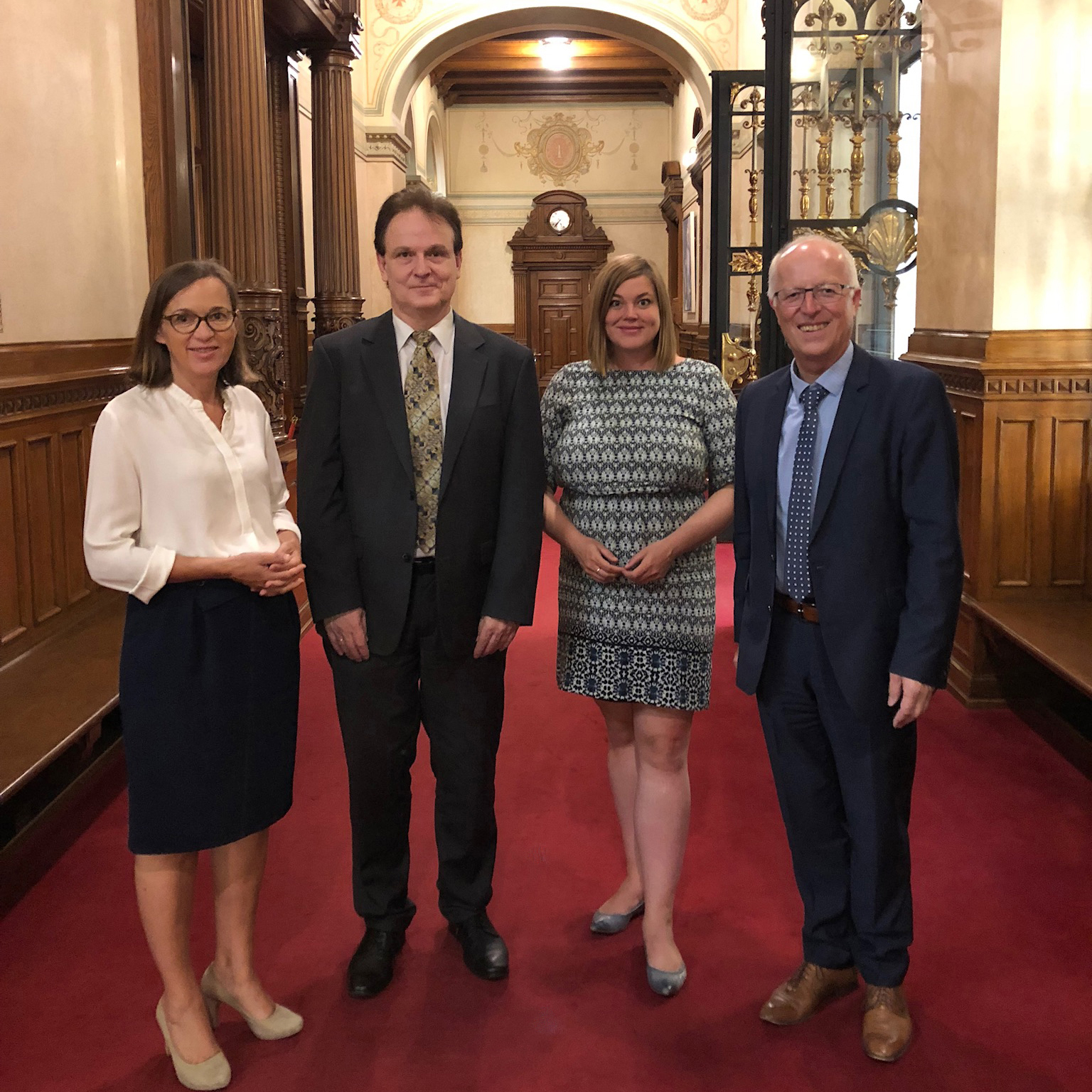 Der Verband privater Hochschulen (VPH) hat sich in Person von Geschäftsführer Thomas Halder und Landessprecher Prof. Dr. Peter François, Präsident der HFH · Hamburger Fern-Hochschule, am Mittwoch (22. August) zu Beratungsgesprächen mit Wissenschaftssenatorin Katharina Fegebank und der Staatsrätin der Wissenschaftsbehörde Hamburg, Dr. Eva Gümbel, im Hamburger Rathaus getroffen.