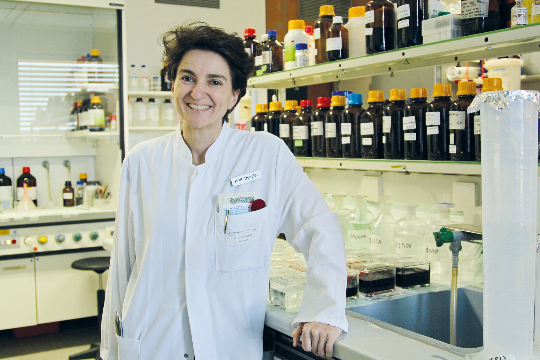 Seit der Anerkennung der Heisenberg-Professur teilt sie ihre Arbeitszeit etwa hälftig zwischen der klinischen Tätigkeit als Oberärztin und ihren Forschungsthemen auf. Dabei ist der Kontakt mit den Patienten auch für ihre wissenschaftliche Arbeit essentiell. „Wir leiten unsere Forschungsfragen direkt aus der klinischen Praxis ab und versuchen dann mit grundlagenwissenschaftlichen Techniken, tierexperimentellen Ansätzen und klinischen Studien Antworten zu finden, mit denen wir den Patienten weiterhelfen können“, unterstreicht Nurcan Üçeyler.