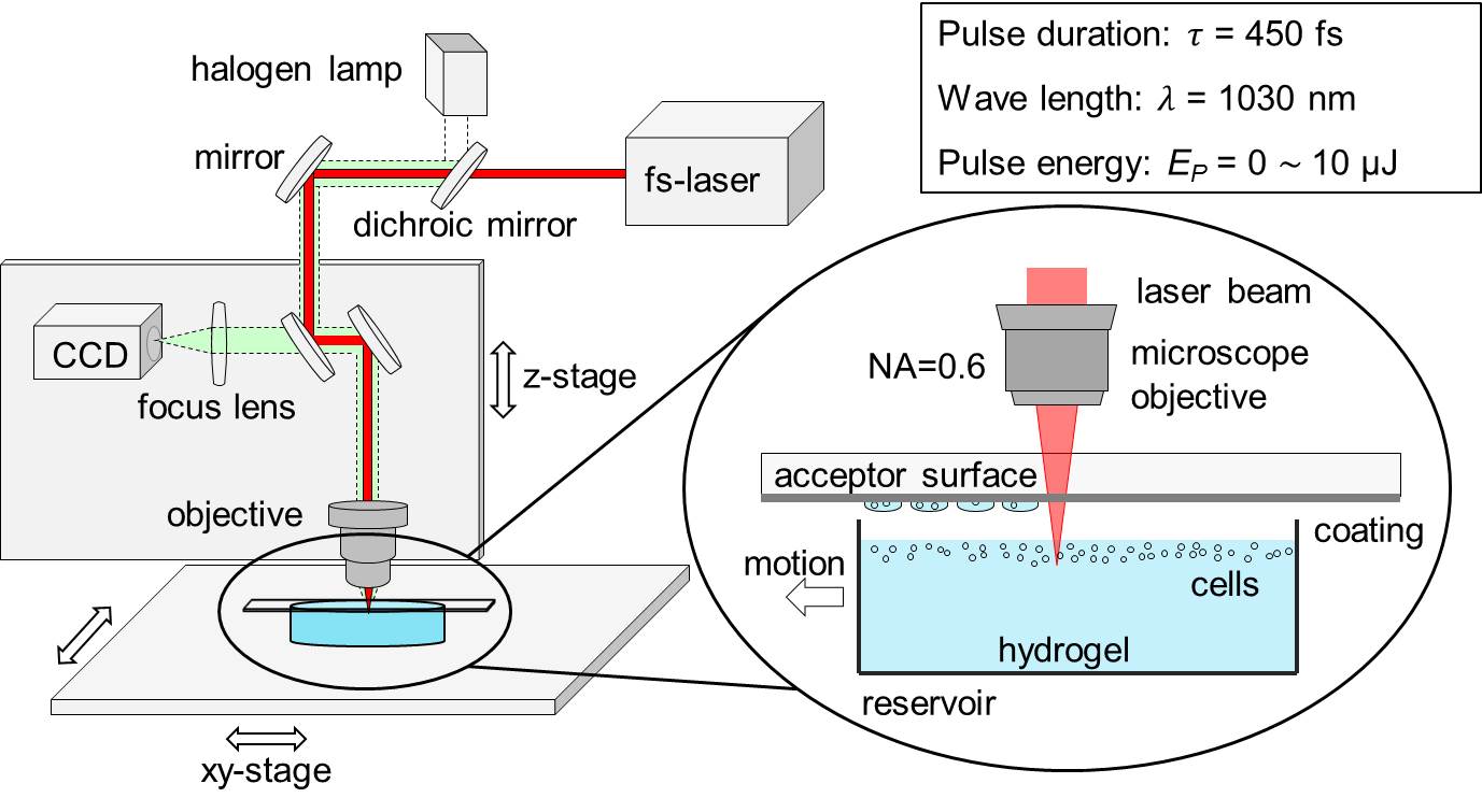 Zhang J, Hartmann B, Siegel J, Marchi G, Clausen-Schaumann H, Sudhop S, et al. (2018) Sacrificial-layer free transfer of mammalian cells using near infrared femtosecond laser pulses. PLOS ONE 13(5): e0195479.