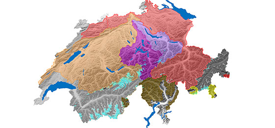 Die Forschenden haben eine detaillierte Karte aller Einzugsgebiete (Flächen, welche die Wasserläufe speisen) in der Schweiz angefertigt: Das fängt an bei Wasserflächen, die bis zu einem Quadratkilometer gross sind, und geht bis zu 1000-mal grösseren Regionen. Die Karte zeigt, dass die Niederschläge, die auf 93% der Schweizer Fläche fallen, mindestens einmal ein einheimisches Wasserkraftwerk passieren. Einige im Berner Oberland entspringende Wasserläufe fliessen durch 30 Werke, bevor sie die Schweiz mit dem Rhein in Basel verlassen. "Das ist eine extrem effiziente Nutzung dieser erneuerbaren Energiequelle", sagt Bettina Schaefli.