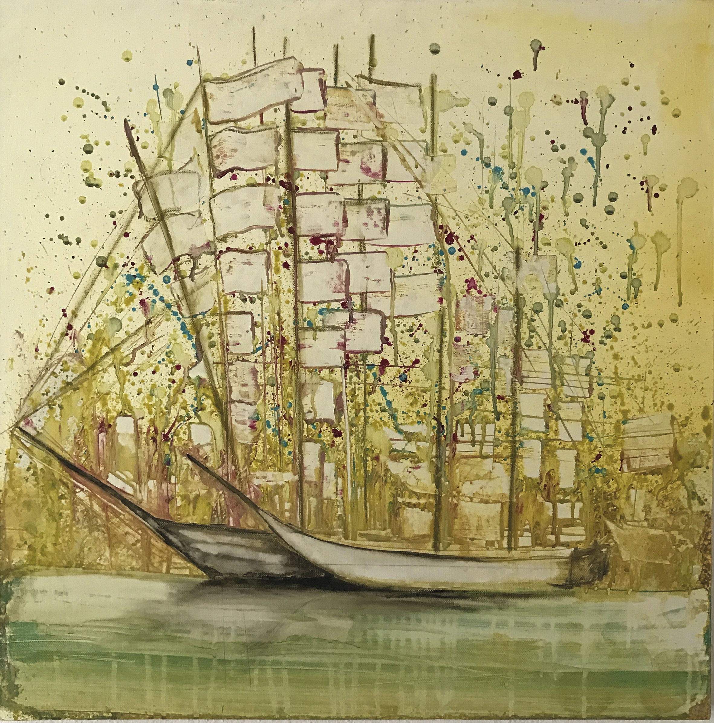 Die Serie der »Haiku-Bilder«, bezieht sich inhaltlich jeweils auf einen Haiku - eine japanische Gedichtform, die aus drei Versen besteht. Die Bilder wirken durch die Collagetechnik und ihre formale und farbliche Reduktion sehr verdichtet. Die Natur in ihrer Stille, aber auch geborgenen Einsamkeit ist hier wahrnehmbar. Ganz anders in dem Zyklus »Hafenlichter«. Dort bilden die Lichtverläufe und Spiegelungen der nächtlichen Lichtquellen auf der Wasseroberfläche ganz eigene Formen und kontrastreiche Farbverläufe. Diese Atmosphäre im nächtlichen Industriehafen erinnert an Metaphern von Vergänglichkeit.