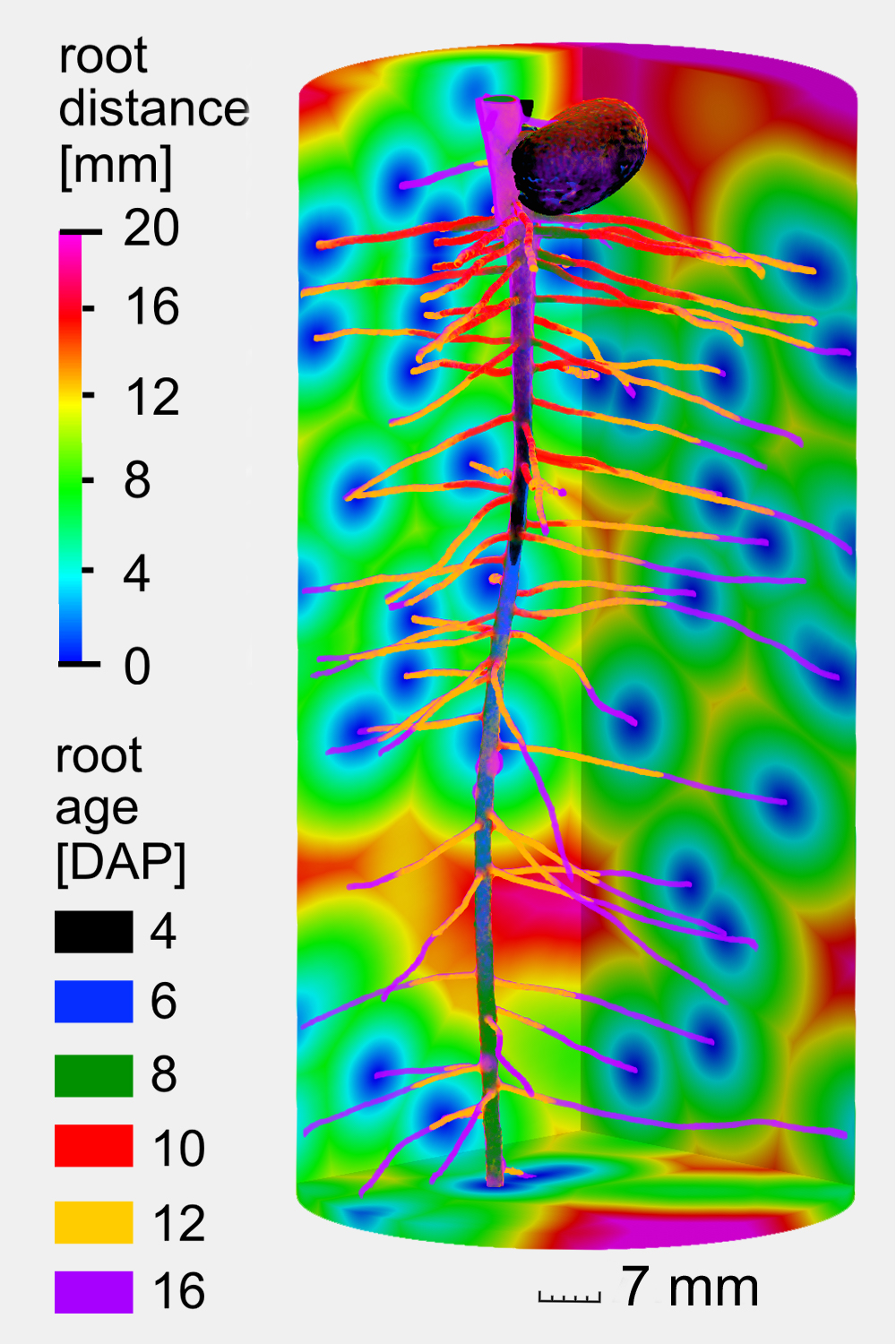 Die wichtigsten Analysetechniken zur Untersuchung der räumlich-zeitlichen Komponente sind zwei- und dreidimensionale bildgebende Verfahren. Sie sollen aufklären, wo und wann die elementaren Prozesse in der Rhizosphäre stattfinden, wie zum Beispiel Nährstoff- und Ressourcentransporte, aber auch die Kommunikation zwischen Pflanze und Mikroorganismen. Im Projekt kommen dazu verschiedene hochmoderne Verfahren zum Einsatz - je nach Skala des zu untersuchenden Parameters. Die Computer-Tomographie beispielsweise ist das Mittel der Wahl, um die natürlichen Wurzelstrukturen im Boden sichtbar zu machen. Mittels der Neutronenradiographie oder Magnet-Resonanztomographie lassen sich wiederum Wassertransportprozesse gut abbilden. Durch das selektive Markieren von Mikrobenstämmen mit Fluoreszenz-Farbstoffen können die Wissenschaftler die Rolle der Mikroorganismen in der Rhizosphäre gezielt untersuchen.