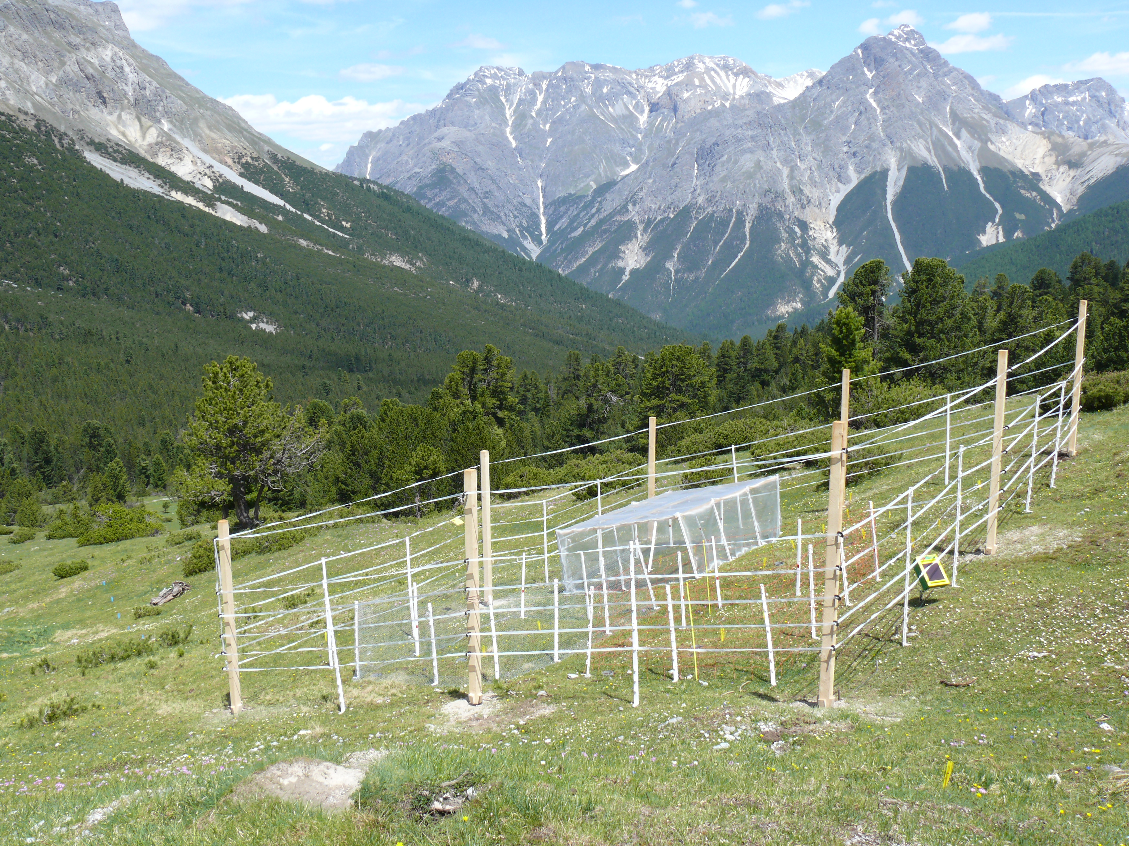 In Absprache mit der Parkverwaltung stellten die Forschenden von 2009 bis 2013 Zäune im Schweizerischen Nationalpark auf. Die Zäune schlossen die Pflanzenfresser der Grösse nach von den Wiesen aus: zuerst die grossen Säugetiere wie den Hirsch, dann die kleineren wie Murmeltier, Hase und Maus und zuletzt die wirbellosen Tiere wie Schnecken, Heuschrecken oder Blattläuse. Das Setup des Experiments entspricht der Realität: Sterben Tiere aus, verschwinden sie der Grösse nach; zuerst die Grossen, dann die Kleinen.