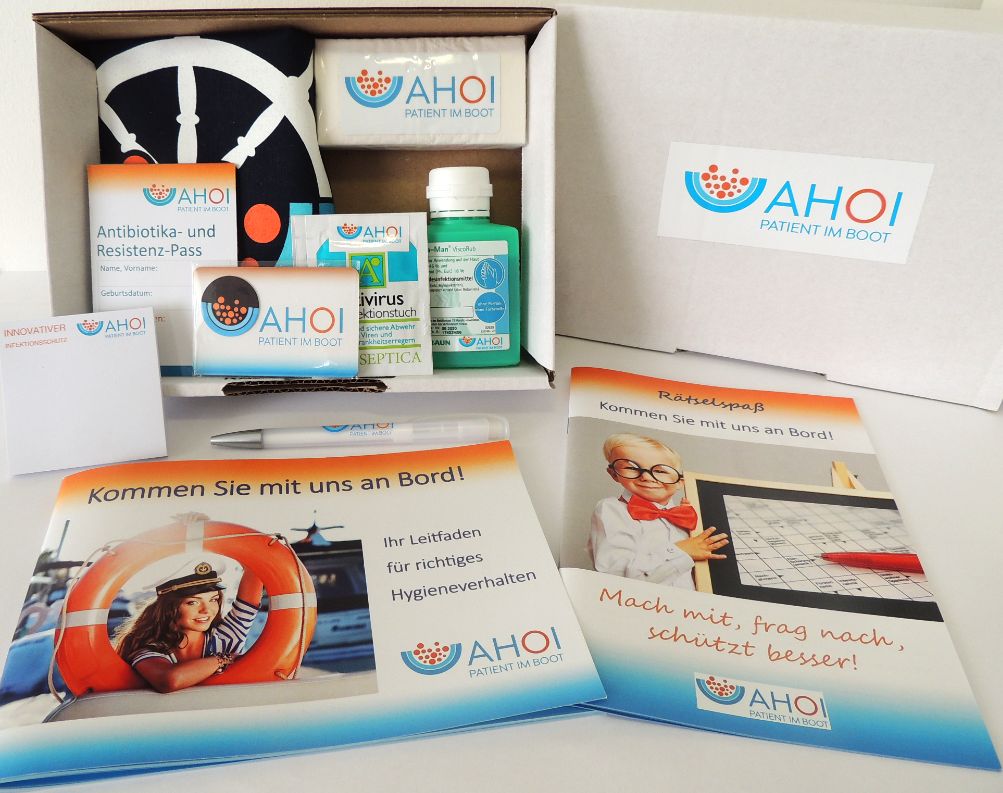 Patientensicherheit geht alle an. Bei dem Greifswalder Hygieneprojekt „AHOI - Patient im Boot“ werden Patienten, Pflegebedürftige und Angehörige aktiv im Kampf gegen Krankenhausinfektionen eingebunden. So erhält jeder Patient der Universitätsmedizin künftig bei seiner Aufnahme eine Einweisung in die Problematik und ein Aufklärungspaket aus dem AHOI-Projekt. Dieses enthält neben einer Informationsbroschüre und dem AHOI-Fragebogen auch praktische Utensilien für den persönlichen Infektionsschutz. Das Projekt soll einen Kulturwandel bei der Infektionsvorbeugung anstoßen. Das Verhalten und die Aufmerksamkeit der Patienten, Pflegebedürftigen und Angehörigen wird gefördert und das medizinische Personal geschult, über Hygiene offen zu kommunizieren.