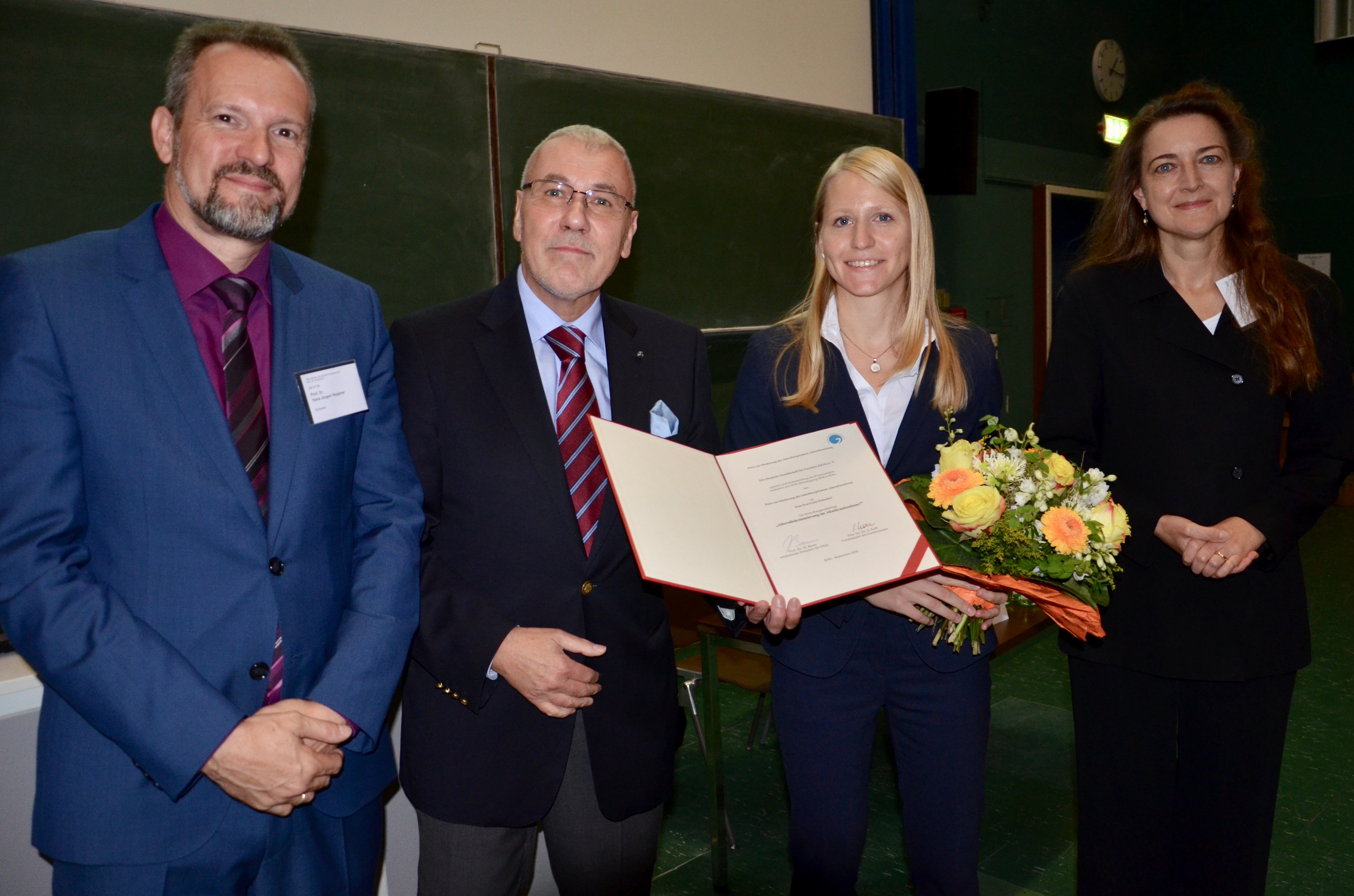 Im Rahmen des Gemeinschaftskongresses der Deutschen Gesellschaft für Gerontologie und Geriatrie (DGGG) sowie der Deutschen Gesellschaft für Geriatrie (DGG) in Köln nahm Frau Schnabel die Auszeichnung von Professor Gerald Kolb, Vorsitzender des Preiskomitees und Geriater am Bonifatius Hospital, sowie den beiden Kongress-Präsidenten Professorin Dr. Ursula Müller-Werdan und Professor Hans Jürgen Heppner entgegen.