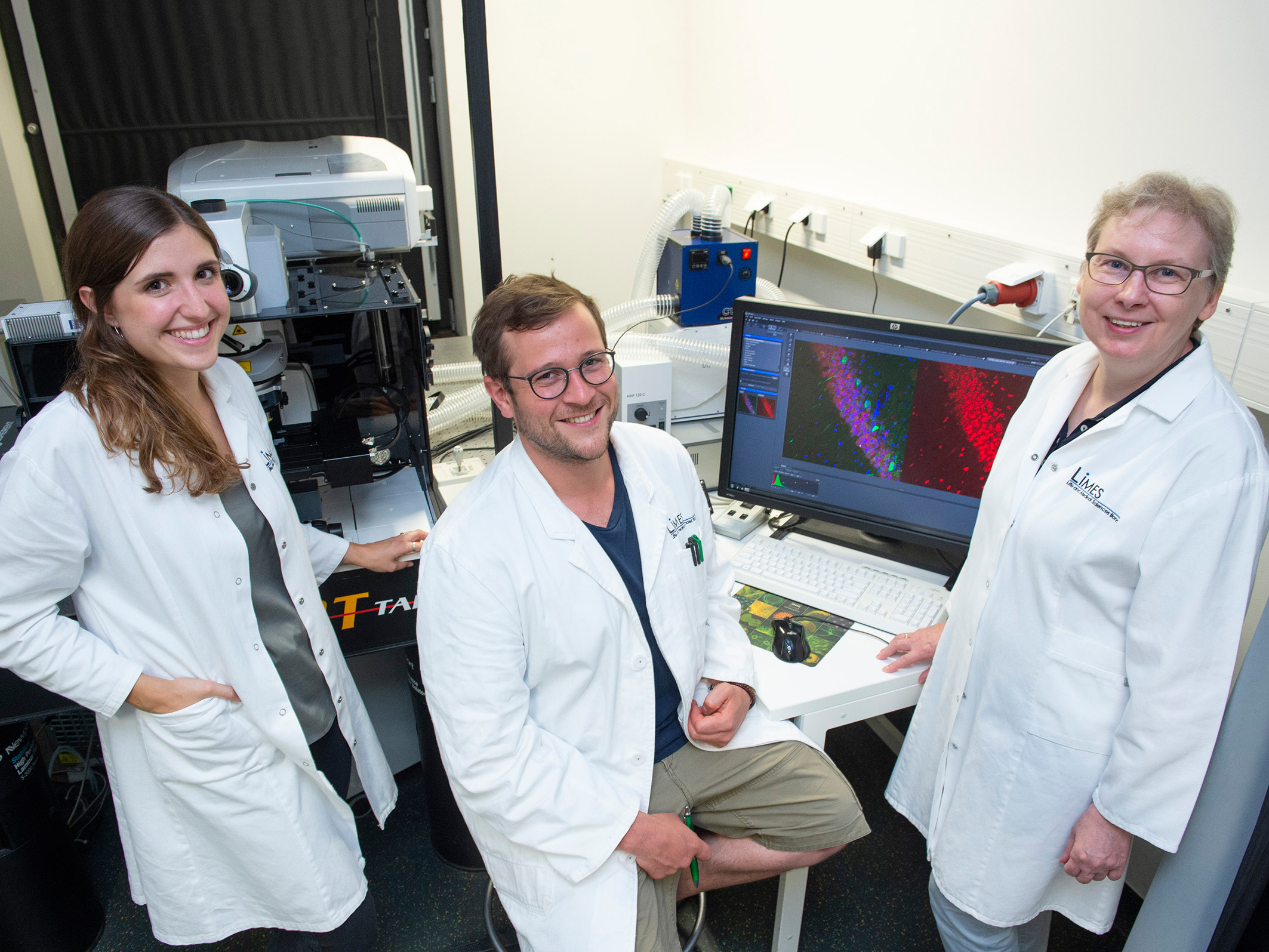 „Diese Verhaltensänderungen waren Hinweise darauf, dass CCL17 nicht nur das Immunsystem beeinflusst, sondern auch auf das Gehirn wirkt“, sagt die Korrespondenzautorin der Studie, Prof. Dr. Irmgard Förster vom LIMES-Institut der Universität Bonn, die auch Mitglied des Exzellenzclusters „ImmunoSensation“ ist. Wenn ein solcher Zusammenhang besteht, welche Zellen im Gehirn produzieren dann das CCL17? Dieser Frage gingen Doktorand Lorenz Fülle und Irmgard Förster zusammen mit Wissenschaftlern des Instituts für Zelluläre Neurowissenschaften um Prof. Dr. Christian Henneberger, Dr. Annett Halle vom Deutschen Zentrum für Neurodegenerative Erkrankungen (DZNE) und Privatdozentin Dr. Judith Alferink von der Universität Münster nach.
