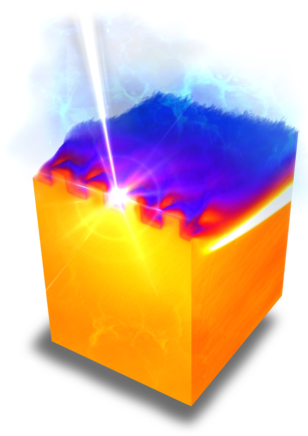 Ein besonderer Aha-Effekt der erfolgreichen Experimente war für die beteiligten Physiker ein spezielles Detail aus ihren Berechnungen. „Unsere Targets wurden am Ionenstrahlzentrum des HZDR speziell entwickelt, damit sie an der Oberfläche eine Art winzige Fingerstruktur aufweisen. Der Laserstrahl streut an dieser Struktur, sodass besonders viele Elektronen aus den Ecken beschleunigt werden und sich überkreuzen“, führt Thomas Kluge aus. Dass dieses durch die Berechnungen vorhergesagte Detail im Experiment zu entdecken war – immerhin läuft es in einer Zeitspanne von nur zehn Femtosekunden ab –, schürt Hoffnungen. Etwa darauf, weitere spontane Musterbildungen (Instabilitäten) beobachten zu können. Diese können zum Beispiel durch die Schwingung der Elektronen im elektromagnetischen Feld des Lasers entstehen.