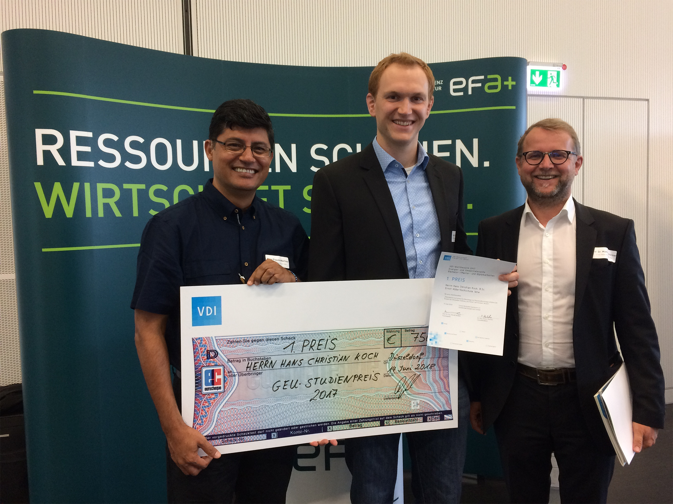 Hans Christian Koch wurde für seine Bachelorarbeit "Ökonomische und technische Bewertung von Wasseraufbereitungsverfahren am Beispiel der informellen Siedlung ‚Las Fincas‘ auf Cozumel, Mexiko“, in diesem Sommer mit dem GEU-Studienpreis 2017 des VDI (Verein Deutscher Ingenieure) geehrt.