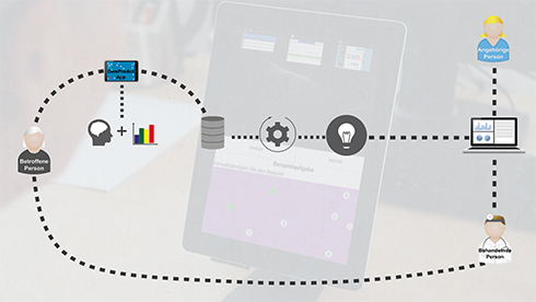 Um für Patienten sowie deren Angehörige und Pflegende eine höhere Lebensqualität zu schaffen, forschte das FZI im Projekt „Pflegecoaching für die optimale Unterstützung von Menschen mit Demenz (PflegeCoDe)“ an digitalen Unterstützungsmöglichkeiten für den Umgang mit der Demenzerkrankung. Zusammen mit den Projektpartnern wurde ein System entwickelt, welches eine frühzeitige Erkennung von Demenz ermöglicht. Außerdem wird der weitere Verlauf der Demenz ununterbrochen beobachtet, was sowohl den Betroffenen als auch den Angehörigen mehr Sicherheit gibt. Schließlich ist auch im Rahmen der Projektarbeit eine integrierte Hilfe-Plattform entstanden, die nützliche Pflege- und Betreuungstipps liefert.