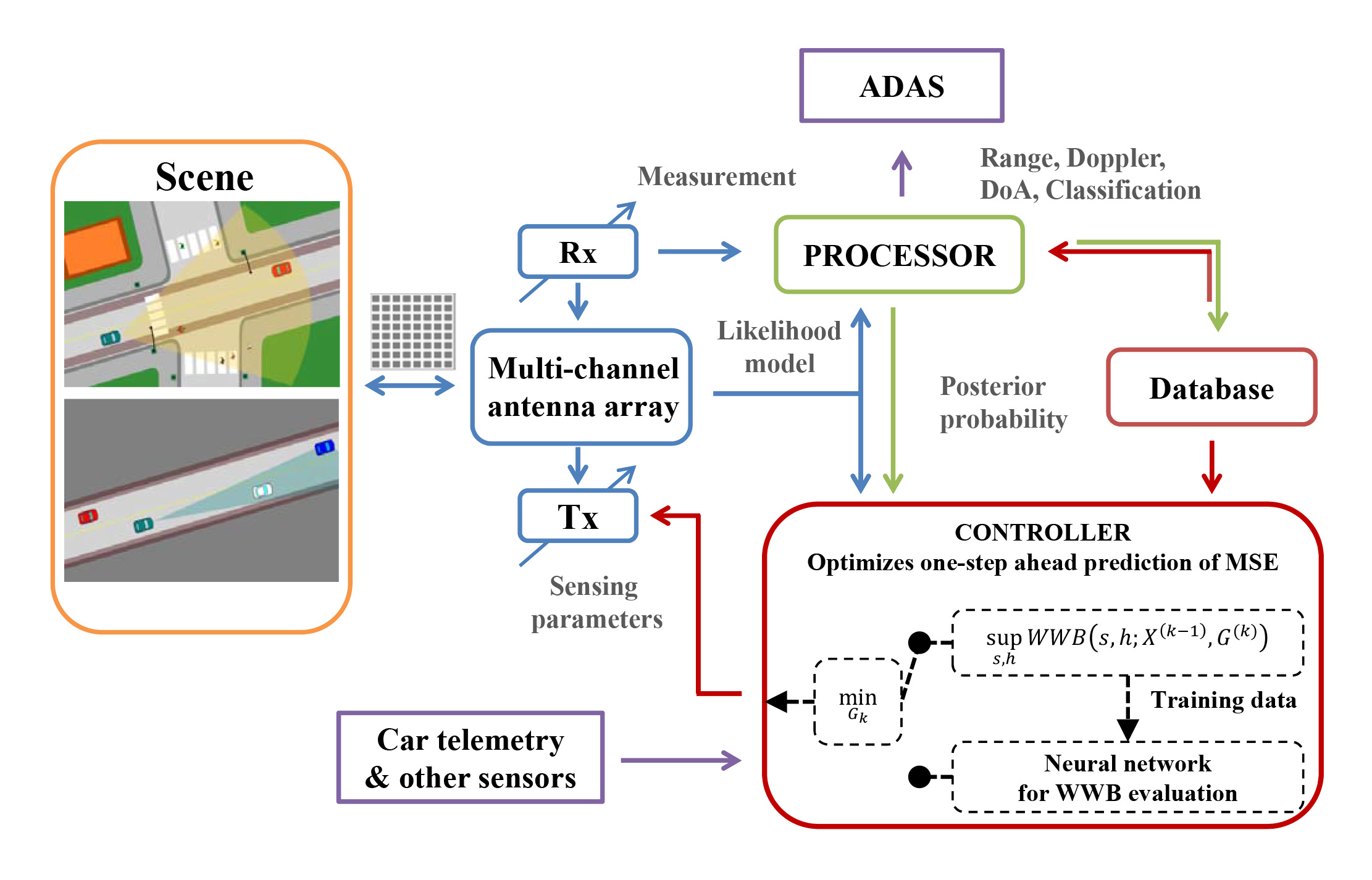 Das Fraunhofer FHR hat ein MIMO-Radar entwickelt, das die Radarszene adaptiv wahrnimmt und mittels komplexer Algorithmen aus vorangegangenen Messungen die neue Position des Radarziels mit hoher Genauigkeit vorhersagt. Mit diesen One-step-Ahead-Vorhersagen wählt der Controller im System aus einem MIMO-Array mit 32 virtuellen Kanälen adaptiv nur die 4 bis 6 für die nächste Messung nötigen Empfänger- und Transmitterkanäle aus. So kann eine exakte Positionsbestimmung auch mit einem vergleichsweise kleinen und günstigeren System bei geringerem Datenaufkommen in Echtzeit erreicht werden. Die Ergebnisse jeder neuen Messung fließen nach dem Close-Loop-Prinzip in die Berechnungen für die nächste Messung ein. So lernt das Radarsystem, seine adaptive Strategie laufend situationsabhängig zu verbessern und ein optimales Bild der Radarszene zu erzeugen.