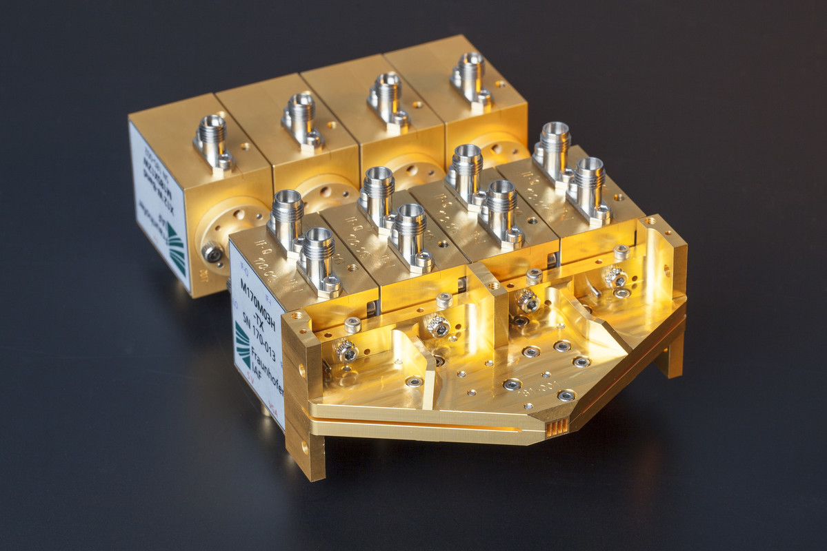 Das Fraunhofer IAF präsentiert elektronische integrierte Schaltungen auf Basis von III/V-Halbleitermaterialien für hohe Frequenzen (bis 600 GHz). Die monolithisch integrierten Mikrowellenschaltungen (MMICs) zur Realisierung von Hochfrequenzkomponenten werden in der metamorphen High-Electron-Mobility-Transistor (mHEMT)-Technologie des Fraunhofer IAF gefertigt. Die mHEMTs basieren auf einem Indiumgalliumarsenid (InGaAs) Kanal mit hohem Indiumgehalt, um ein exzellentes Rauschverhalten zu erzielen. Die am Fraunhofer IAF entwickelten Schaltungen verfügen über ein breites Anwendungspotenzial: In der Kommunikation sorgen sie für eine ultraschnelle Übertragung von sehr großen Datenmengen, in der Flugsicherheit können Sie als sichere Landehilfe eingesetzt werden und in der Raumfahrt dienen sie zur Klima- und Erdbeobachtung aus dem All.