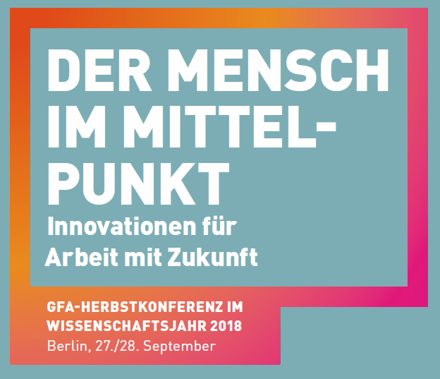 Die GfA-Herbstkonferenz „DER MENSCH IM MITTELPUNKT. Innovationen für Arbeit mit Zukunft“ findet am 27./28. September im Bundesministerium für Bildung und Forschung (Kapelle-Ufer 1) in Berlin statt. Eine Anmeldung für Journalistinnen und Journalisten ist per Mail an frohwein@acatech.de noch möglich.