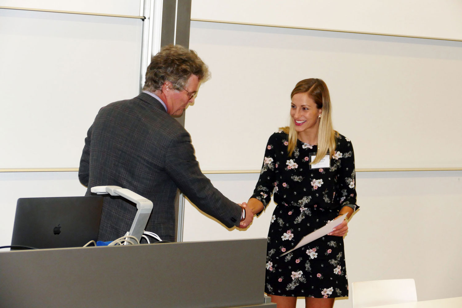 Professor Dr. Erik Arntzen, Präsident der EABA, verlieh den „B.F. Skinner Foundation Award for Students in Europe“ an vier Studentinnen – für das Jahr 2018 Nicole Pfaller-Sadovsky und Renata Cambraia, für das Jahr zuvor Gabriela E. López Tolsa Gómez und der FHWS-Studentin Alexandra Schönleber. Diese hielt einen Vortrag zu ihrem Thema „Behavioral safety in the hairdresser`s shop“ – „Verhaltenssicherheit im Frisörsalon“: Unsichere oder riskante Körperhaltungen, so Schönleber, seien ein häufiges Problem bei professionellen Friseuren. Sie arbeiteten nicht nur mit Chemikalien und vielen elektrischen Geräten, sie müssten auch während ihrer Berufsausübung fast durchgehend stehen. Dies führe zu Haltungsverformungen und dauerhaften Schmerzen. Die Methode der „verhaltensorientierten Arbeitssicherheit“ (BBS) ist ein nachgewiesener Ansatz, um diese riskanten Verhaltensweisen zu reduzieren und sichere Verhaltensweisen zu verstärken.