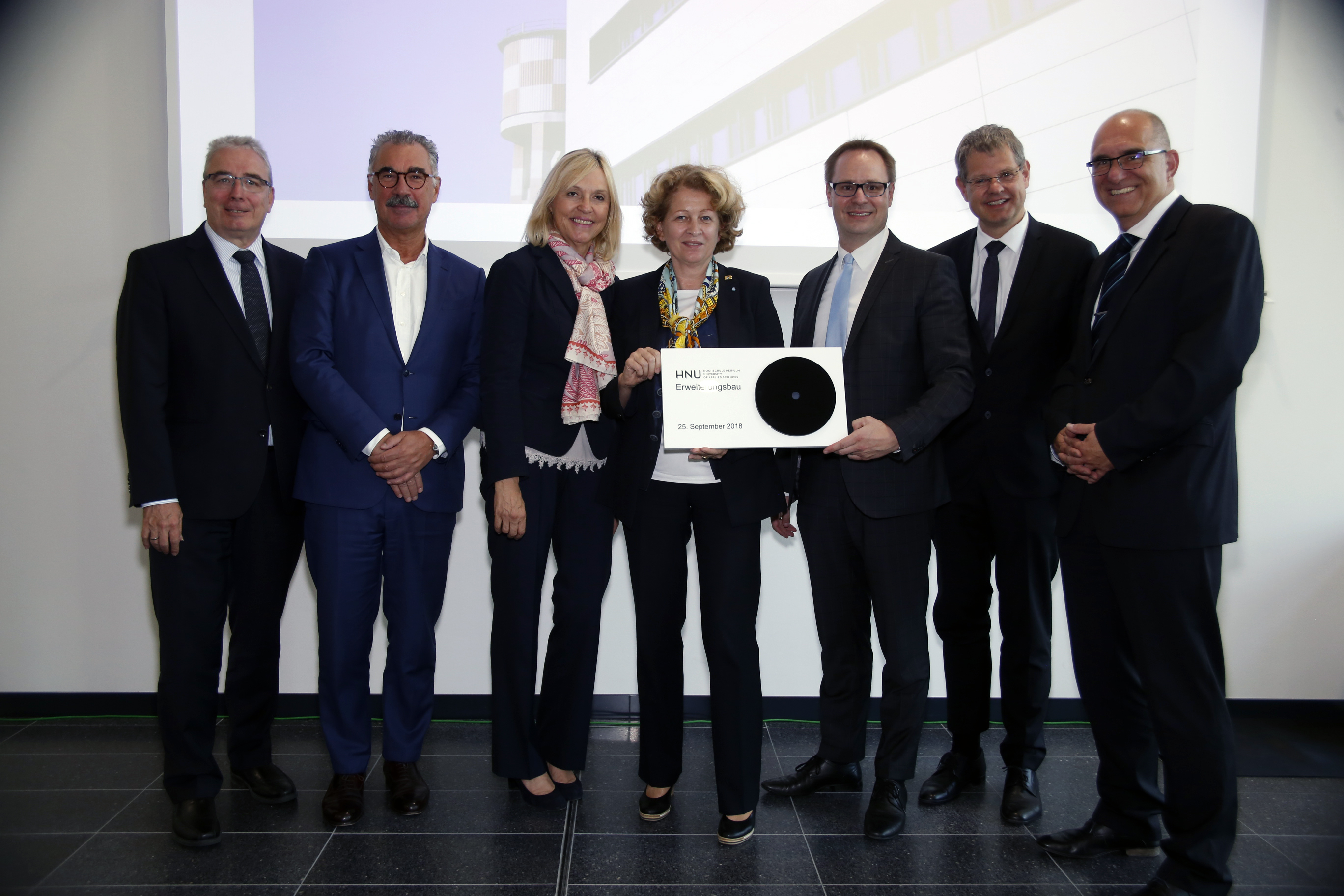 „Die Einweihung unseres zweiten Bauabschnitts ist ein für die HNU und die Region prägendes Ereignis, welches uns zu einer Campushochschule im Wiley macht und damit alle Einrichtungen und Fakultäten wieder zu einem Ort zusammenführt“, so Prof. Dr. Uta M. Feser, Präsidentin der HNU, in ihrer Begrüßung der Gäste, darunter zahlreiche Vertreter aus den Städten der Region, aus Wirtschaft und Wissenschaft sowie am Bau beteiligte Unternehmen und Behörden.