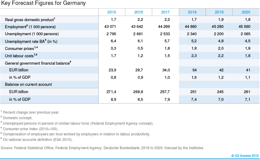 Joint Economic Forecast Autumn 2018: Upturn Loses Momentum