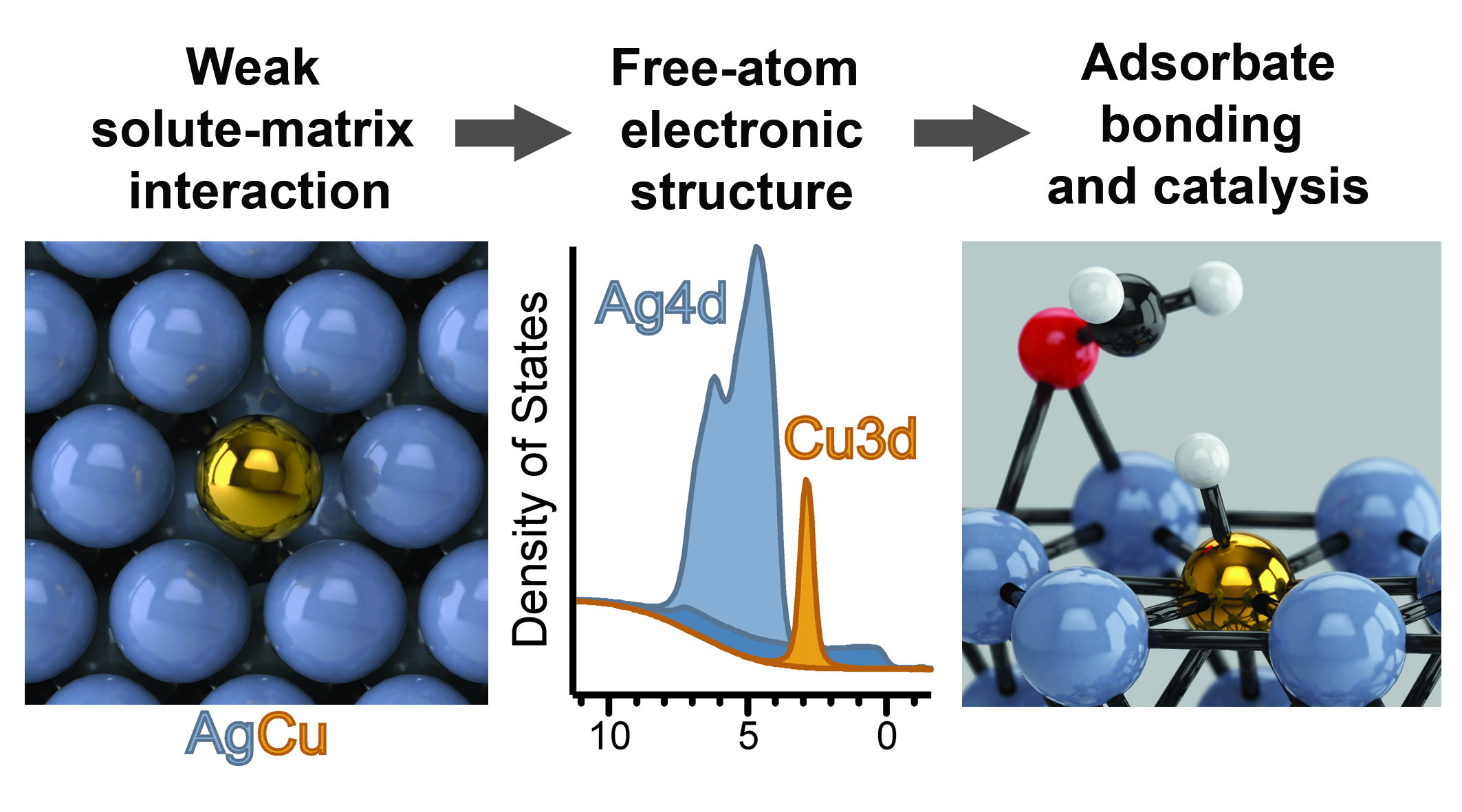 The team found that a dilute mixture of copper in silver results in certain properties that resemble free isolated atoms. Nature uses isolated metal atoms in biological catalysts called enzymes. These finely tuned catalysts are known for their unparalleled catalytic efficiency. However, industrial catalysts have yet to capitalize on this phenomenon because they require much harsher conditions than biological systems can tolerate. Industrial catalysis must instead rely on less efficient inorganic materials in the form of macroscopic particles. By taking advantage of the properties of isolated atoms, there is the potential that catalytic efficiencies of industrial catalysts could rival biological systems.
