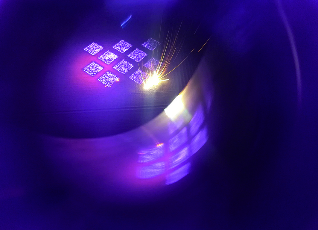 Dafür wird ein Array von sechs vertikal emittierenden Laserbarren (VCSEL) mit je 400 W Leistung in der Prozesskammer installiert. Mit Infrarotstrahlung bei 808 nm kann dieses Array das Bauteil während des Aufbauprozesses von oben auf mehrere hundert Grad Celsius erhitzen. Die Barren werden einzeln angesteuert, so dass auch Abfolgen verschiedener Muster möglich sind. Der Prozess wird dabei mit einer Infrarotkamera überwacht.