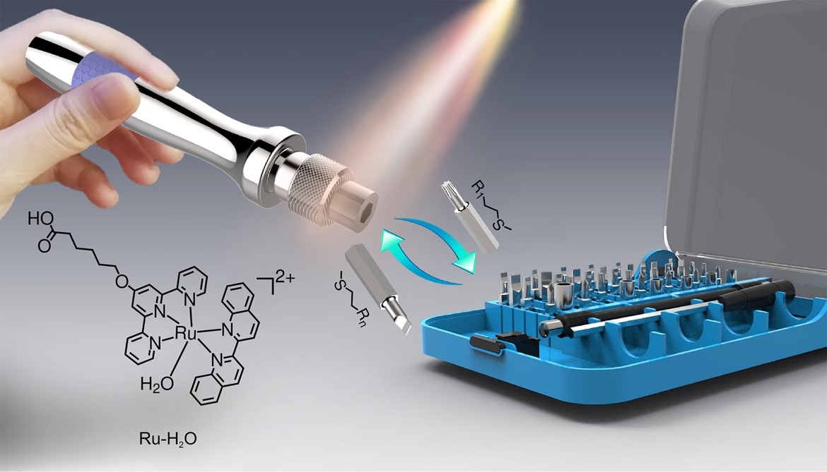 Das internationale Team von Wissenschaftlern hat Oberflächen entwickelt, die mit einem speziellen Molekül bedeckt sind, welches ein Ruthenium-Atom in seinem Zentrum hat. Dieser Molekül-Komplex ist fest mit der Oberfläche verbunden und wirkt quasi als molekularer Schraubenzieher. „Man kann sich dieses Molekül als Schraubenzieher vorstellen, an den verschiedene Bits angedockt werden können. Dies bedeutet, dass wir die Oberfläche durch Wechsel der Bits mit verschiedenen Funktionen ausstatten können, wie z. B. wasserabweisenden Eigenschaften“, sagt Prof. Dr. Si Wu, Gruppenleiter am MPI-P (Abteilung von Prof. Dr. Hans-Jürgen Butt).
