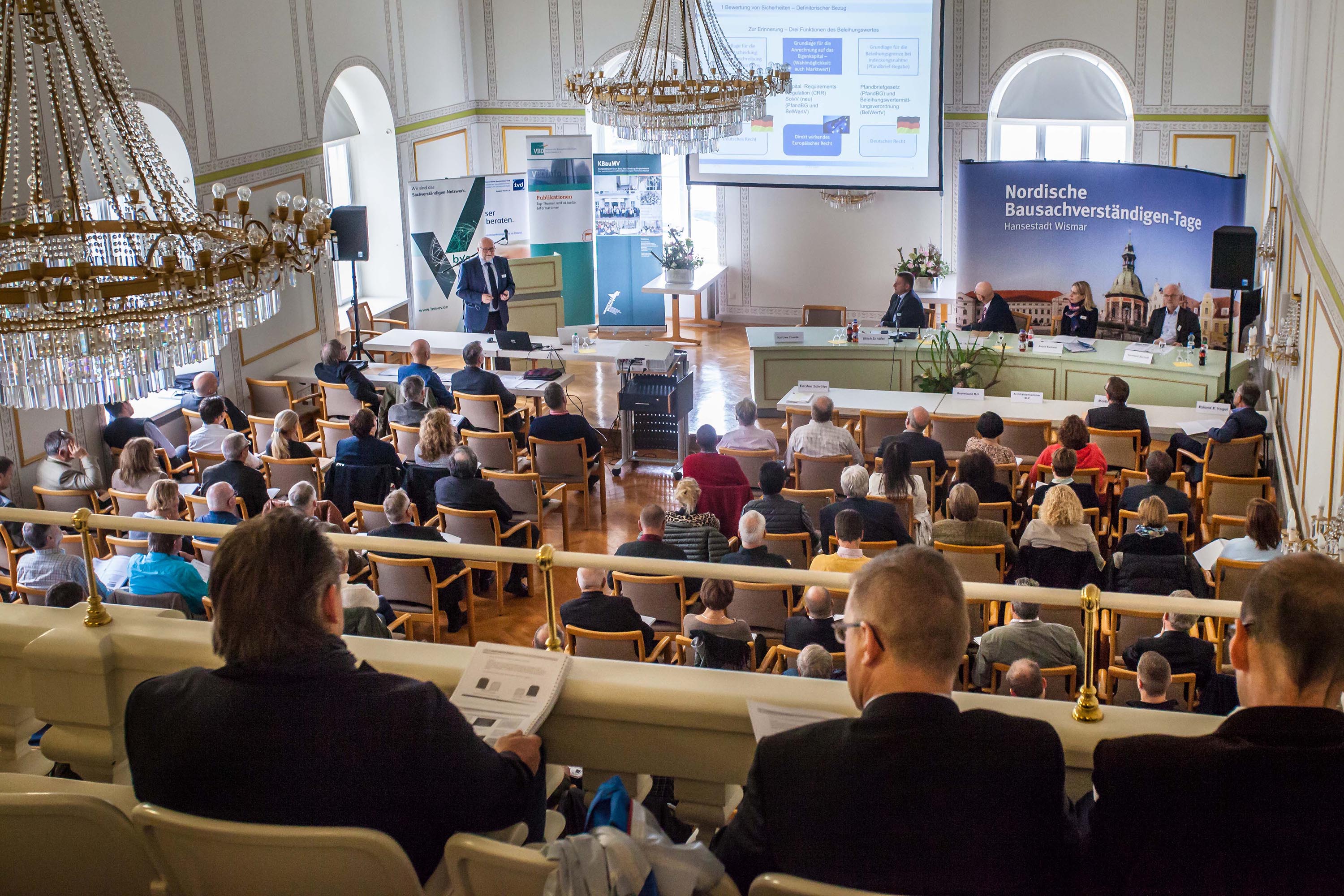 In diesem Jahr steht am Donnerstag, dem 11, Oktober 2018, um 14:45 Uhr ein ganz besonderer Punkt auf dem Programm der jährlich stattfindenden Nordischen Bausachverständigentage – eine Podiumsdiskussion mit drei der ehemals vier Gründungsväter der seit 25 Jahren erfolgreich durchgeführten Fachveranstaltung. Erich Schulz, 1993 Vorsitzender des Verbandes der Bausachverständigen Norddeutschlands, kann nicht an der Jubiläumsveranstaltung teilnehmen, weil er leider schon verstorben ist. Professor Dr. sc. oec. Walter Schäfer, der an der Hochschule Wismar im Fachbereich Bauingenieurwesen lehrte, Siegbert Eisenach, Hauptgeschäftsführer der IHK zu Schwerin, und Professor Dr.-Ing. Wilfried Haker, Gründungspräsident der Ingenieurkammer M-V, werden zurückblicken auf die gemeinsame Arbeit und die teilnehmenden Sachverständigen in die Diskussion über zukünftige Aufgaben und die weitere Ausrichtung einbeziehen sowie live über verschiedene Fragen abstimmen.