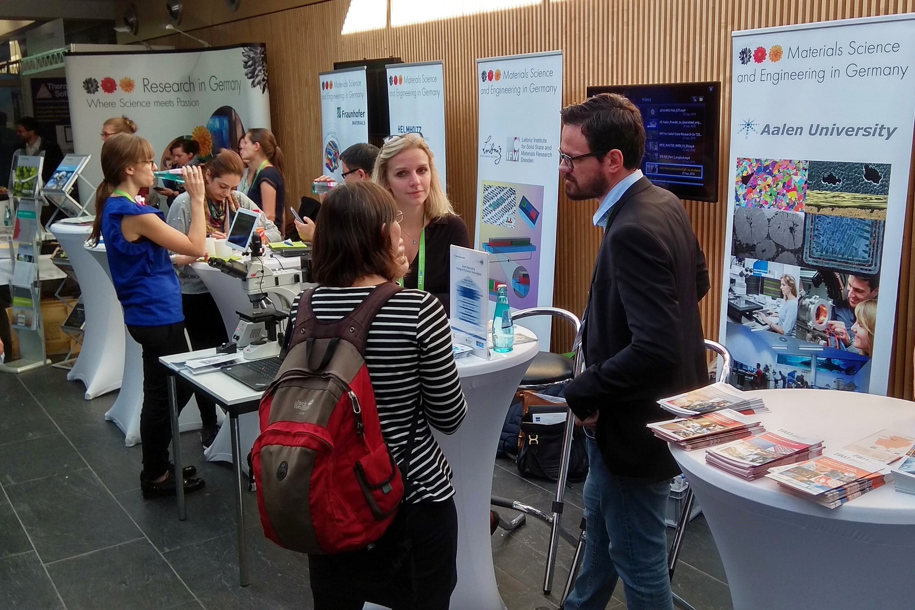 Dieses konzertierte Konzept mit einem Gemeinschaftsstand, den die Deutsche For-schungsgemeinschaft (DFG) koordinierte, wurde in diesem Jahr erstmals im Fachgebiet Materialwissenschaft und Werkstofftechnik realisiert. Bei der internationalen Konferenz „Materials Science and Engineering 2018“ informierte die Hochschule Aalen gemeinsam mit 13 weiteren Institutionen internationale Wissenschaftler umfassend über Forschungs- und Fördermöglichkeiten. Fachspezifisch wurden die Aktivitäten des SmartPro-Kooperationsnetzwerks „Smarte Materialien und intelligente Produktionstechnologien für energieeffiziente Produkte der Zukunft“ der Hochschule Aalen auf dem Gebiet der Materialforschung vorgestellt. Ziel der Forschungsaktivitäten ist es, Grundlagen für die Entwicklung neuer smarter Produkte zu schaffen, die nachhaltig energie- und ressourceneffizient sind. Ein Fokus liegt auf der Erforschung und Entwicklung smarter Materialien mit maßgeschneiderten Eigenschaften für die jeweils spezifischen Anwendungszwecke. Dabei wurden auch neue Verfahren vorgestellt, welche beispielsweise die Methoden des Machine Learnings nutzen, um auf Basis von Bilddaten die Qualität der Materialien bewerten zu können.