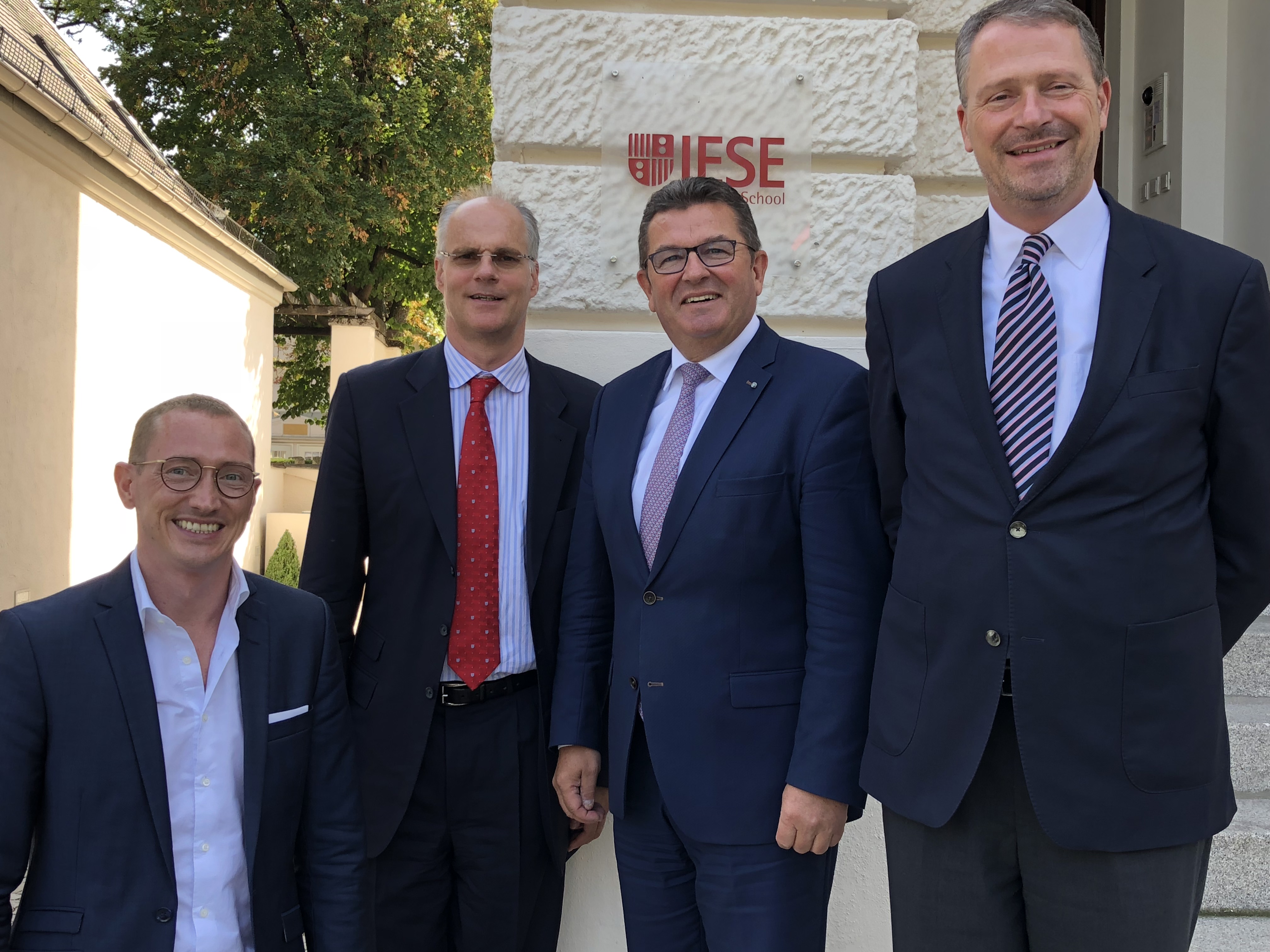 Nach Barcelona, Madrid, New York City und Sao Paulo hat die weltweit renommierte IESE Business School 2015 einen Campus in München eröffnet und bietet ab 2019 neben weiterbildenden Executive Education Programmen auch ein berufsbegleitendes Executive MBA Studium an. Für Bayerns Wirtschaftsminister ist diese Entscheidung nur folgerichtig. Während eines Besuches auf dem Campus sagte Pschierer: „Bayerns Wirtschaft zeichnet sich durch eine vor allem mittelständisch geprägte Unternehmensstruktur aus.“ Diese sei auf exzellente Fach- und Führungskräfte angewiesen. Der Wirtschaftsminister weiter: „Die IESE Business School mit ihrem Renommée ist eine echte Bereicherung für den Wirtschaftsstandort.“