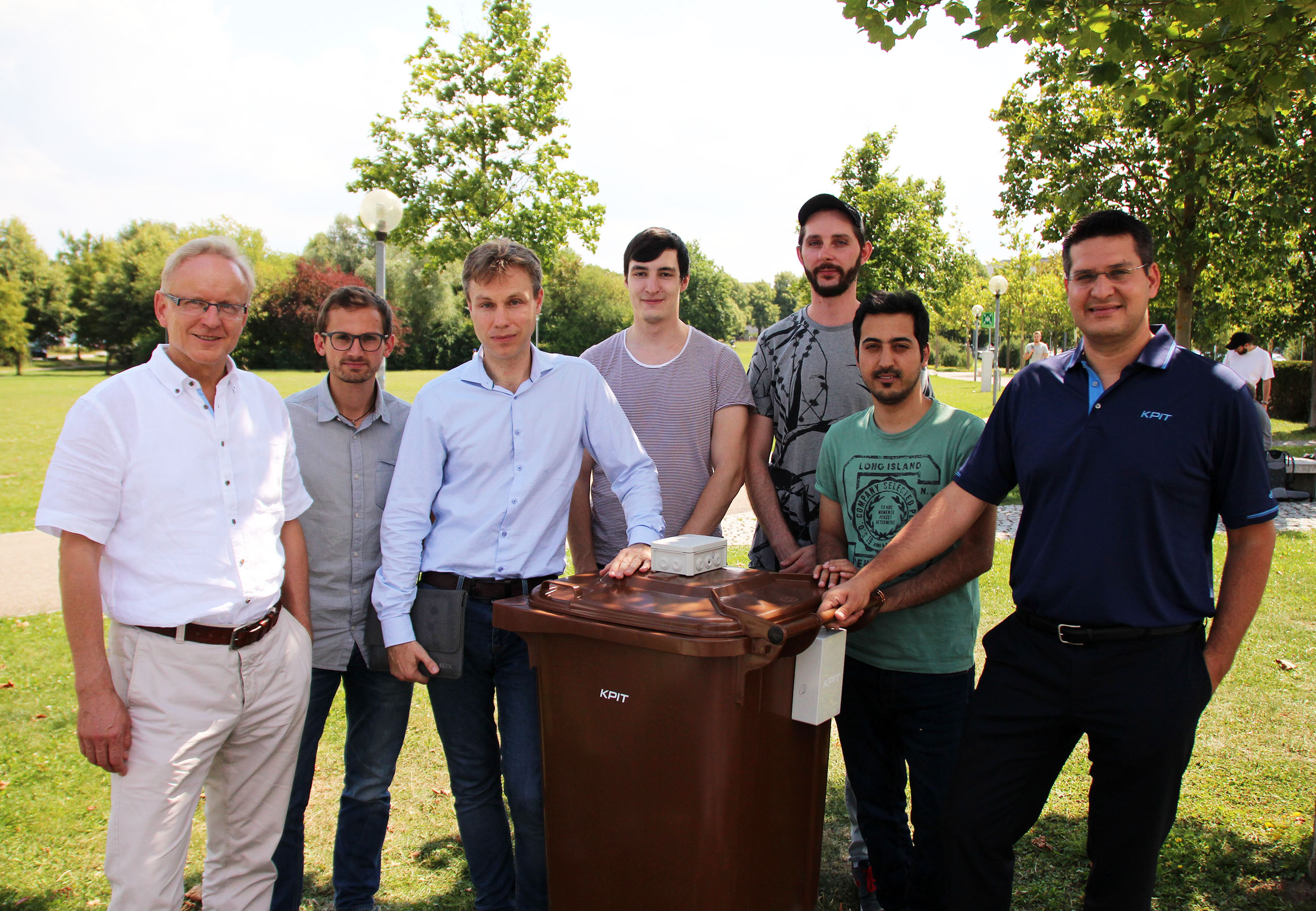 An der OTH Regensburg wurde die erste Abfalltonne für Biomüll bereits mit dem dafür entwickelten Sensor versehen. Für die Hardware war das Elektroniklabor der Fakultät Elektro- und Informationstechnik rund um Prof. Dr. Martin Schubert verantwortlich. Den Sensor gebaut hat der Masterand Josef Weiß. Der Masterand Markus Wildgruber hat für den zugehörigen Mikrocontroller einen Timer programmiert, mit dem der Sensor eine Lebensdauer von rund drei Jahren besitzt. Mit Recherchen zu Technologien aus Sensornetzen ähnlich der „intelligenten“ Abfalltonne haben die Studierenden Daniel Blum, Sebastian Haas, Nathan Hausmann und Matthias Schmidbauer unter Leitung von Prof. Dr. Klaus Volbert, Fakultät Informatik und Mathematik, zu dem Projekt beigetragen.