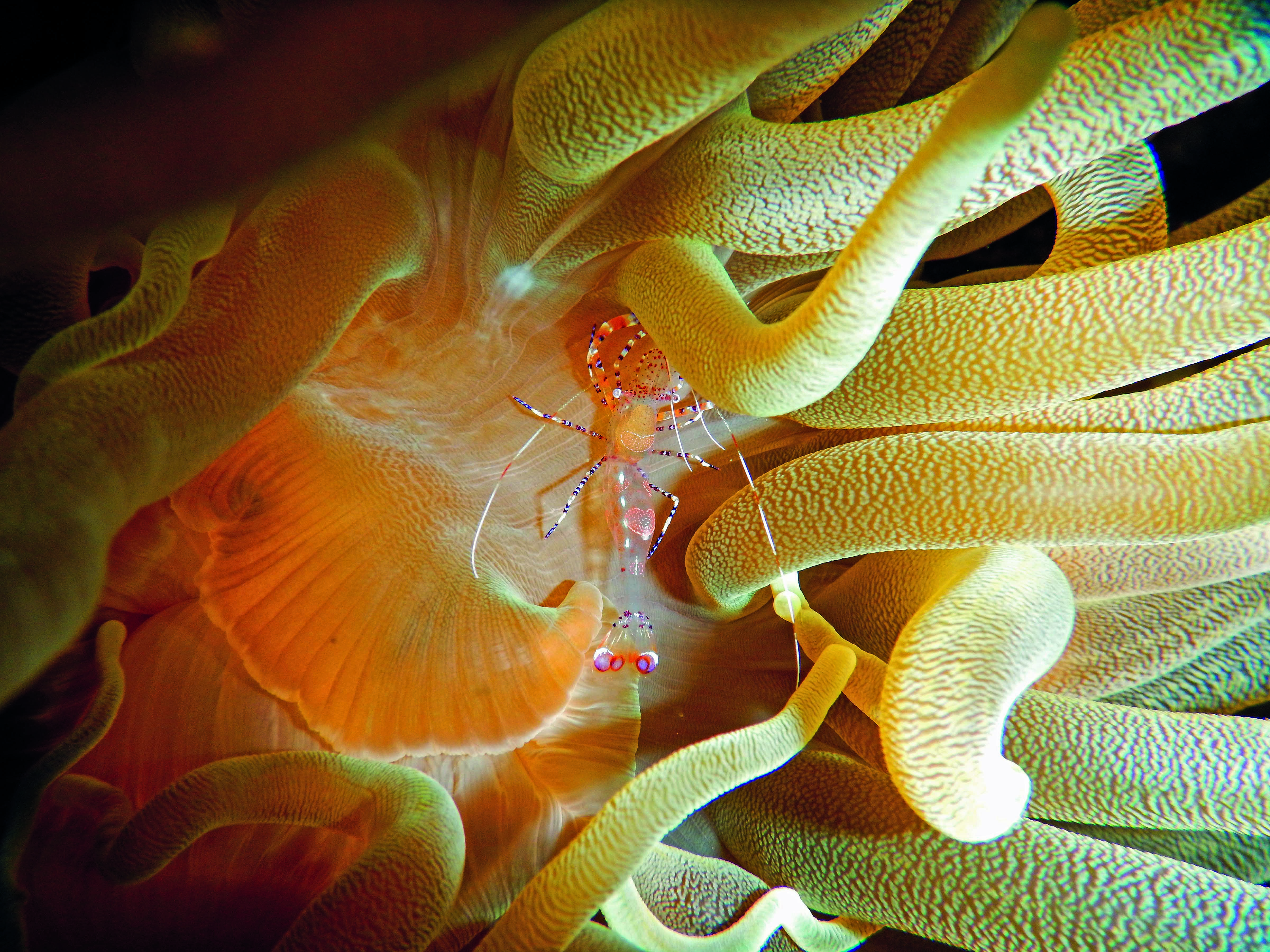 Dabei offenbart die Nahansicht: auch in den kleinsten Nischen und sehr verborgenen Ecken des Riffes haben sich Untermieter eingenistet oder suchen Schutz im verwinkelten Höhlensystem der Korallen. Die Vielzahl an Riffbewohnern bildet ein fein ausgewogenes Netz aus Nahrungsbeziehungen, in dem jeder seine Funktion hat.