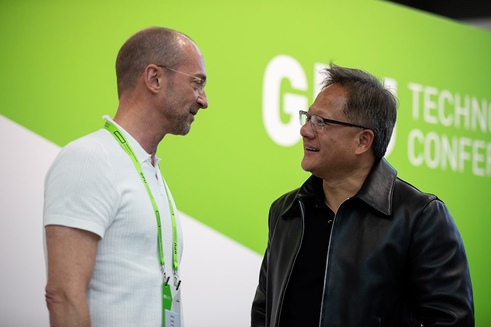 Kaiserslautern/Munich, 11.10.2018 - The German Research Center for Artificial Intelligence (DFKI) is the first institution in Europe to receive an NVIDIA DGX-2, which is considered to be the world's most powerful AI supercomputer. Jensen Huang, founder and CEO of NVIDIA, presented the new AI system in his keynote speech at the GPU Technology Conference Europe (GTC) in Munich yesterday and referred to the outstanding work of DFKI in the field of satellite image analysis.
