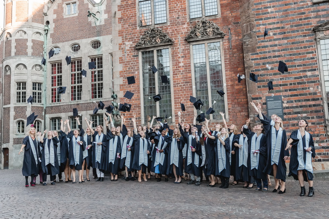 Bremen, 15. Oktober 2018. Insgesamt 104 Bachelor- und Master-Studierende haben in diesem Jahr – bis zum 1. Oktober – ihren Abschluss an der APOLLON Hochschule der Gesundheitswirtschaft erlangt. Während des Fernstudiums hielten sich viele von ihnen immer wieder einen entscheidenden, besonders motivierenden Moment vor Augen: das traditionelle Hütewerfen zum Studienabschluss. Am vergangenen Samstag, 13. Oktober 2018, konnten sich nun 35 Absolventinnen und Absolventen ihren lang gehegten Traum erfüllen. Im Rahmen einer feierlichen Verabschiedung samt Urkundenübergabe in der Glocke Bremen zelebrierten sie ihren Fernstudienabschluss an der APOLLON Hochschule der Gesundheitswirtschaft – umringt von stolzen Familienmitgliedern, Freunden und Kommilitonen.