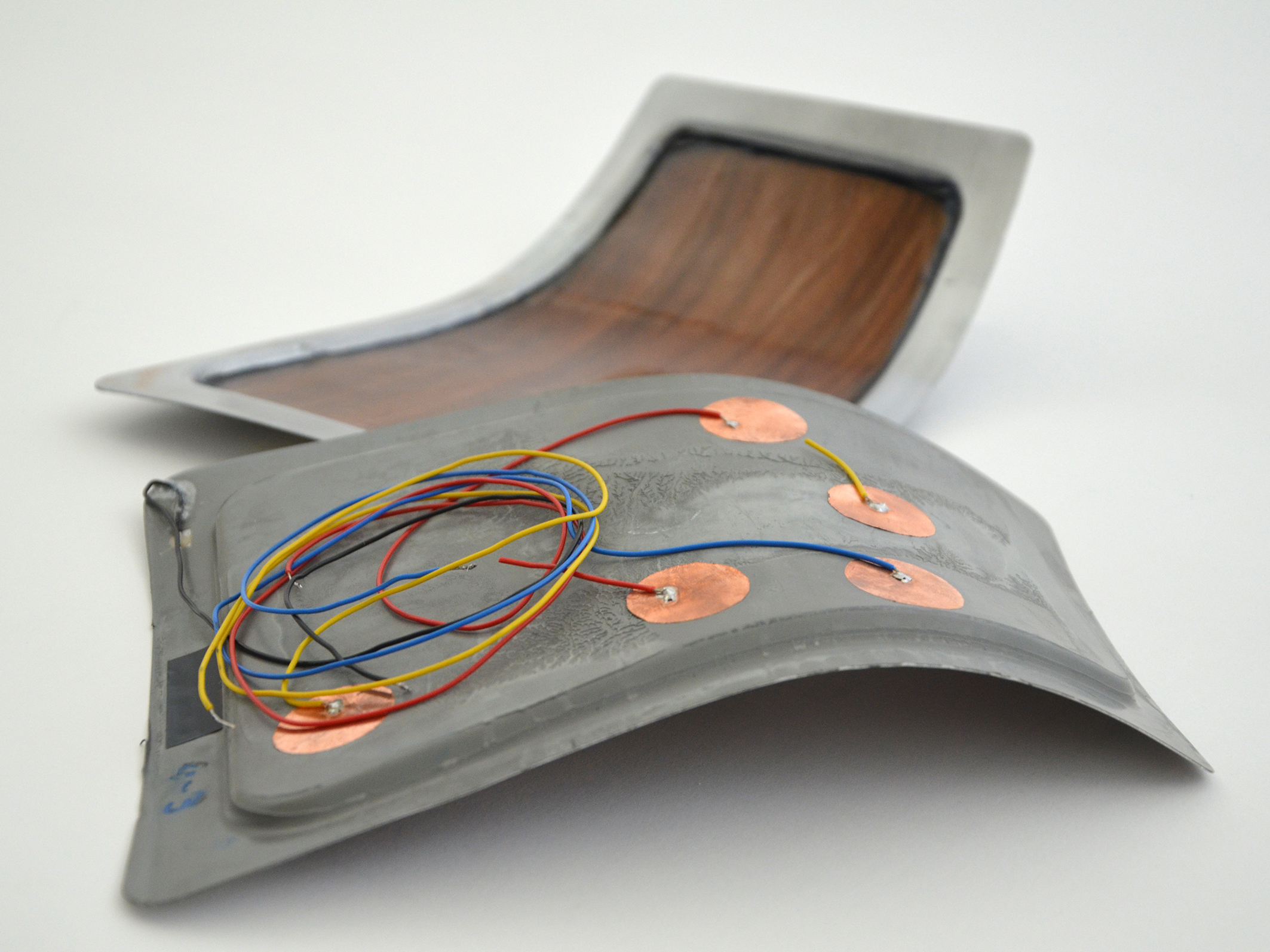 Bisher wurden meist starre und spröde Keramikwerkstoffe verwendet. Um jedoch eine höhere Flexibilität der Werkstoffe bei der Umformung zu erreichen, bringen die Forscher die Keramik in eine thermoplastische Folie ein. Den Keramikkristallen müssen zunächst elektrische Vorzugsrichtungen gegeben werden, um den sogenannten Piezoeffekt zu aktivieren. Dazu legen die Forscher eine hohe elektrische Spannung an und benötigen gleichzeitig Wärme. An dieser Stelle der Fertigung sparen sie einen Herstellungsschritt ein, da die Temperatur des Umformprozesses dafür genutzt wird und ein nachträgliches Erwärmen des Bauteils nicht erforderlich ist. Ihr Ziel ist es, dass zukünftig zwischen Halbzeug und fertigem Bauteil nur noch ein Prozessschritt liegt. So soll auch die Deckschicht des Bedienfeldes, zum Beispiel mit Biokunststoff imprägniertes Holzfurnier, bereits während des Umformprozesses aufgebracht werden.