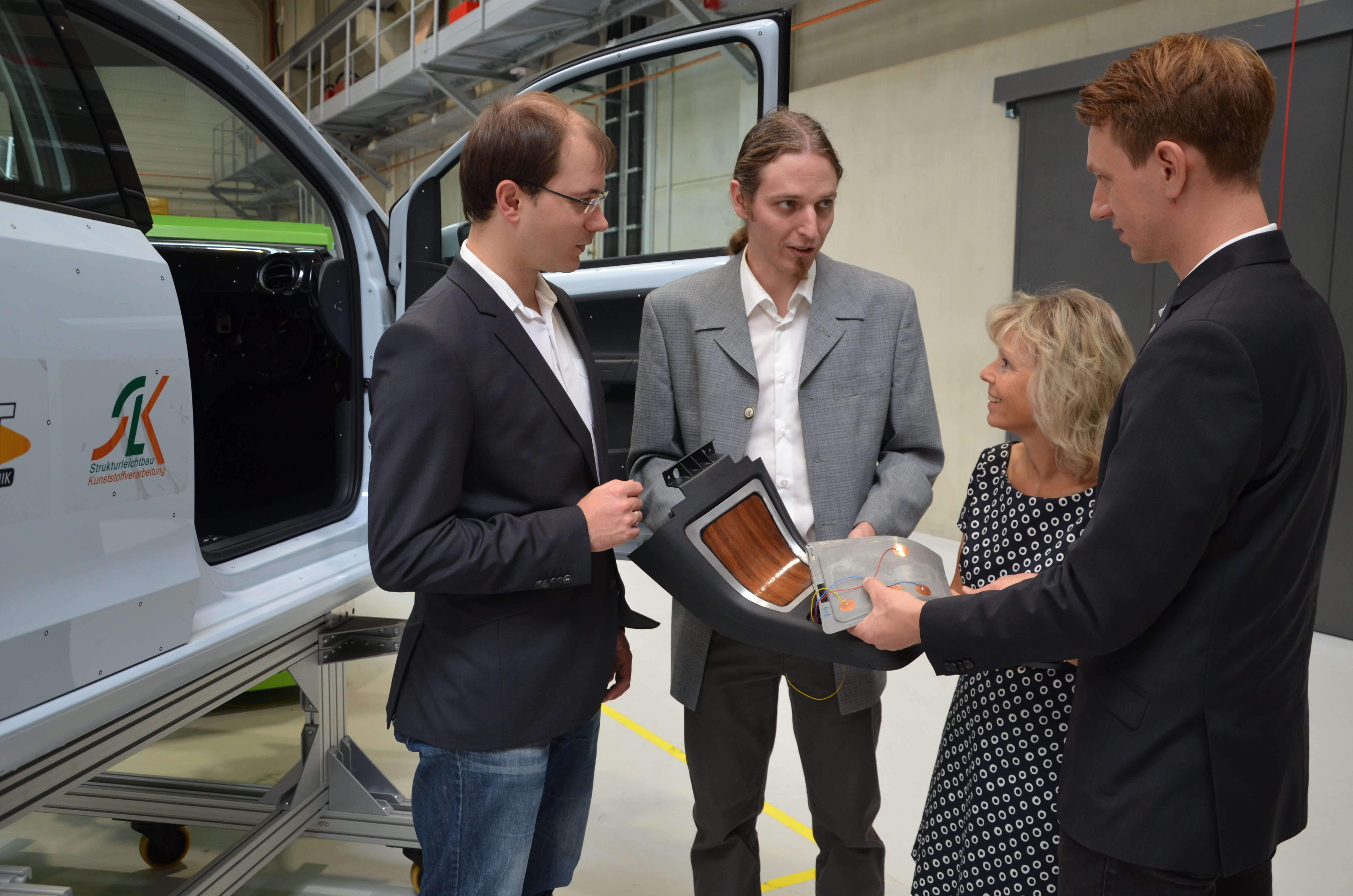Durch den Verbund der verschiedenen Werkstoffe, die Kombination mehrerer Fertigungstechnologien der Kunststoff- und Metallverarbeitung sowie die Minimierung von Verfahrensschritten soll die Herstellung des Bauteils zukünftig auf einen Fertigungsschritt reduziert und so das Halbzeug ressourceneffizient und kostengünstig in Großserie produziert werden. „Sensoren, die bisher erst nach der eigentlichen Herstellung eines Bauteils angebracht werden, können so bereits während des laufenden Herstellungsprozesses in Halbzeuge integriert werden“, erklärt Ricardo Decker, wissenschaftlicher Mitarbeiter am Bundesexzellenzcluster MERGE. Der Materialverbund ist dann bereits vor der Bauteil-Fertigstellung funktionalisiert. „Gerade im Bereich der Innenausstattung eines Fahrzeugs spielt die geschickte Kombination von Bauteilen und elektronischer Funktionalität eine immer größere Rolle, da die interaktive Bedienung des Fahrzeugs nicht nur für mehr Komfort sorgt, sondern durch das Einsparen von Schaltsystemen und der dazu notwendigen Verkabelung auch eine Gewichtsreduktion erzielt werden kann“, so der Forscher.