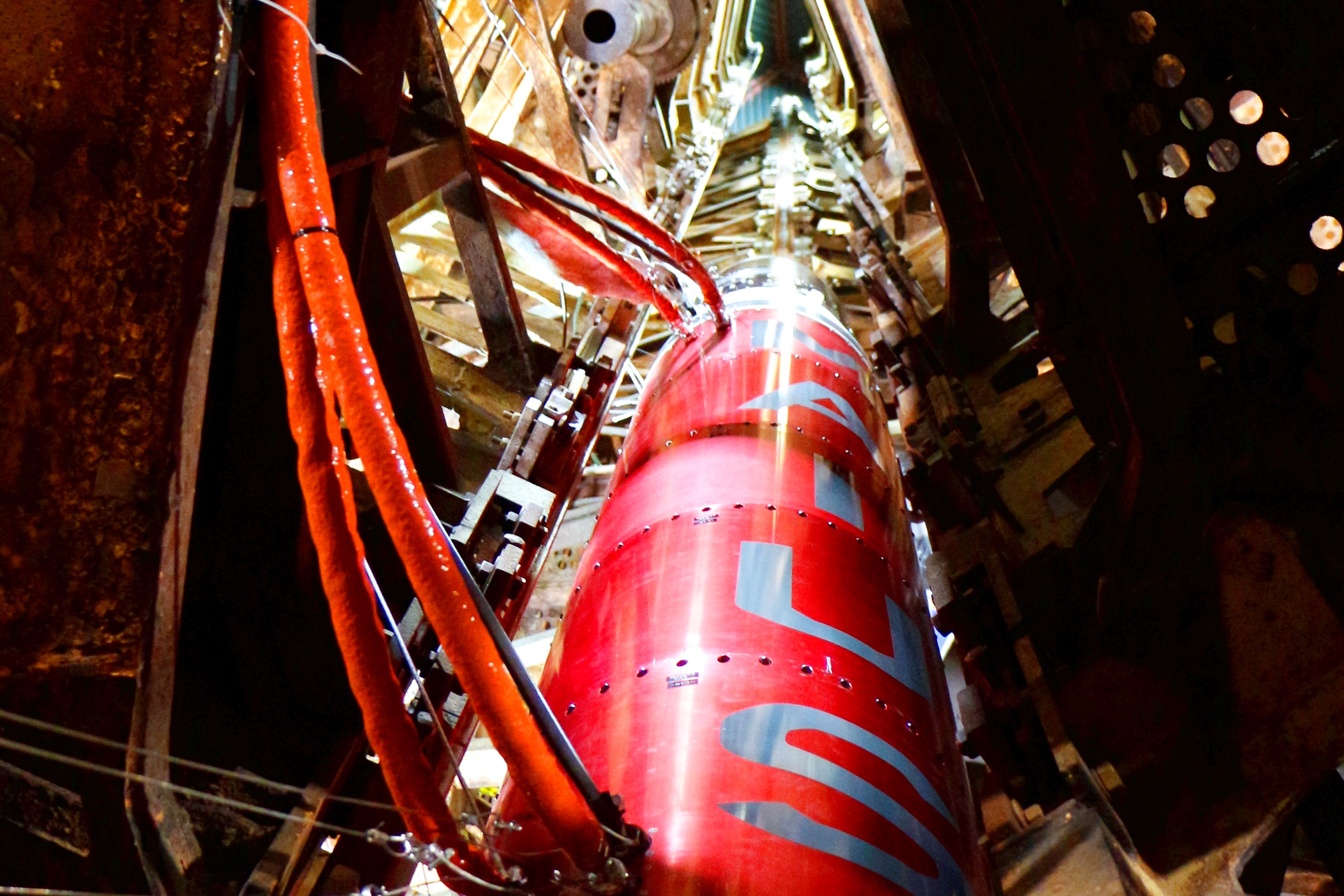Photo 2 (MAIUS-1_Bild-2.jpg): The MAIUS-1 rocket in the launcher at the Esrange Space Center in northern Sweden.