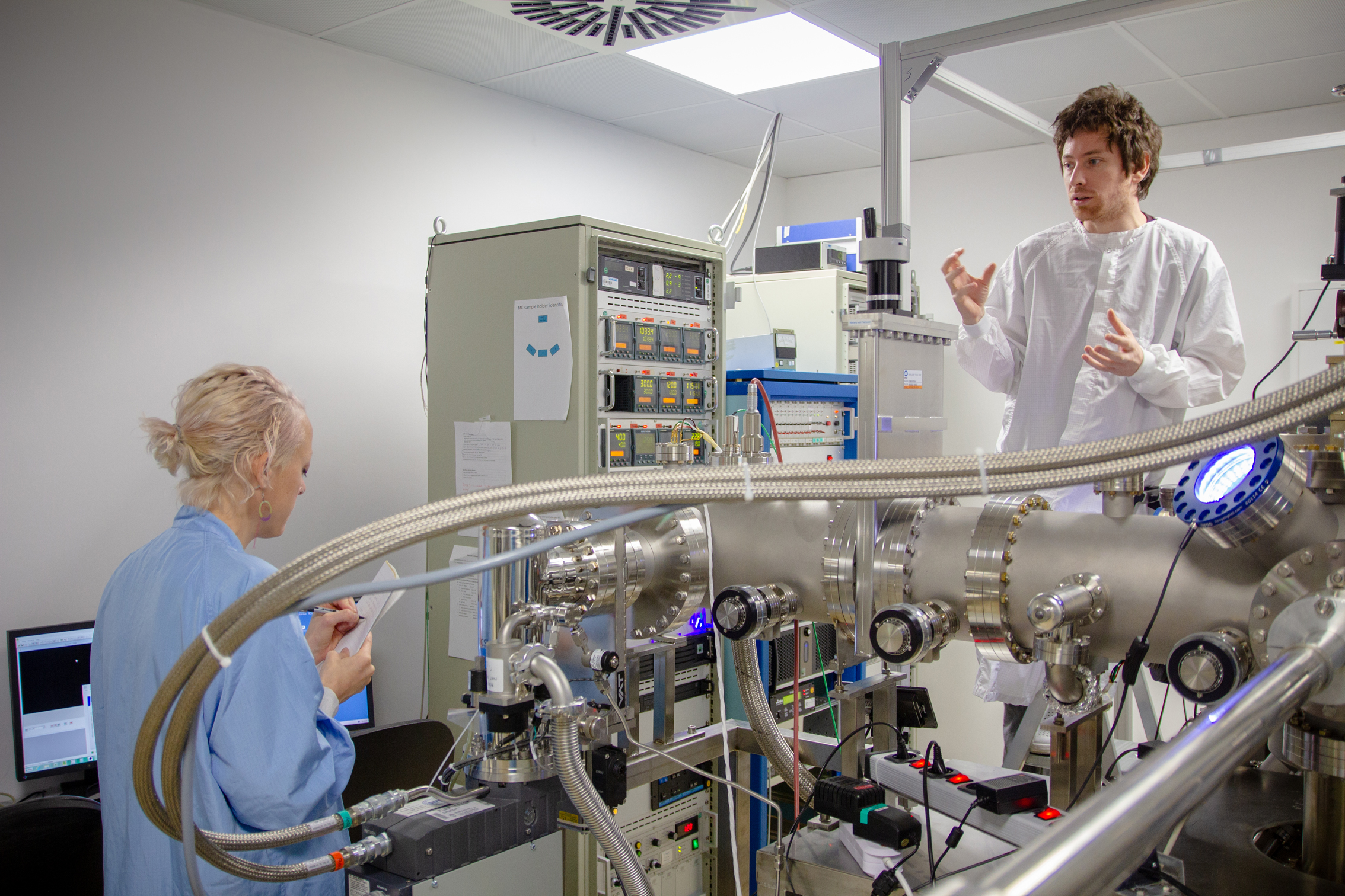 Crystalline materials are obtained combining oxygen and metal atoms to create thin layers (at the nanometric scale) of oxides in a deposition process called Molecular Beam Epitaxy (MBE). In this process, the reaction of metal with an oxygen plasma results in the formation of a crystal structure where atoms are ordered in a regular lattice. Plasma is the fourth fundamental state of matter also known as 'radiant matter'.