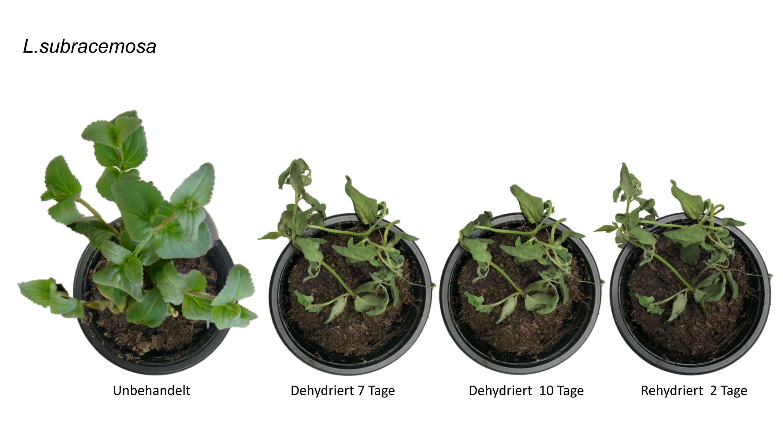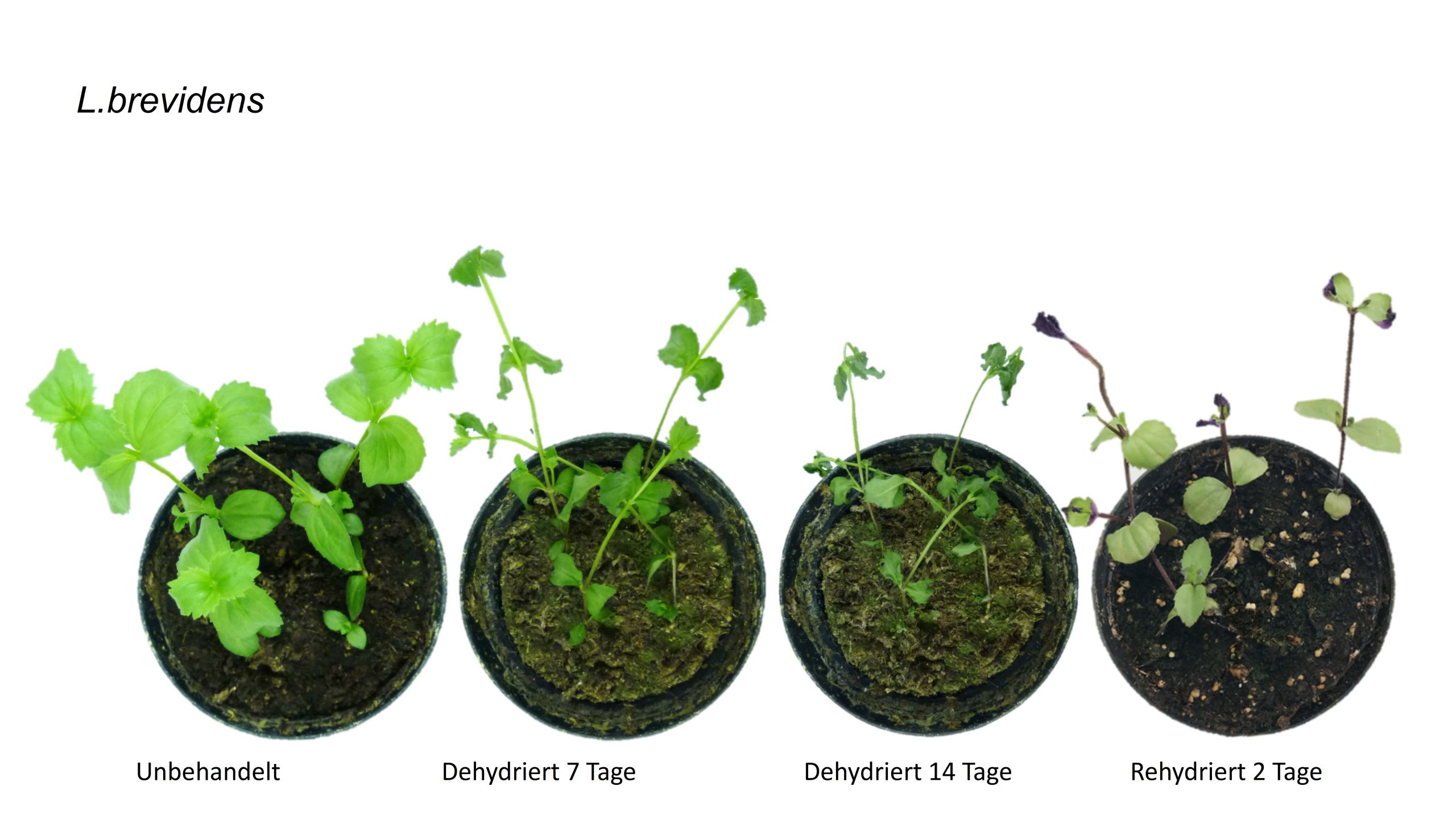 Die aktuelle Studie profitiert dagegen von einem seltenen Glücksfall: Vor einigen Jahren brachte der Botaniker Eberhard Fischer von einer Exkursion nach Ostafrika zwei Pflanzenarten mit. Beide gehören der Gattung Lindernia an, sind also nahe miteinander verwandt. Dennoch zeigen sie eine sehr unterschiedliche Reaktion auf Wassermangel: Während Lindernia brevidens Trockenphasen problemlos übersteht, ist Lindernia subracemosa diesbezüglich weitaus empfindlicher.