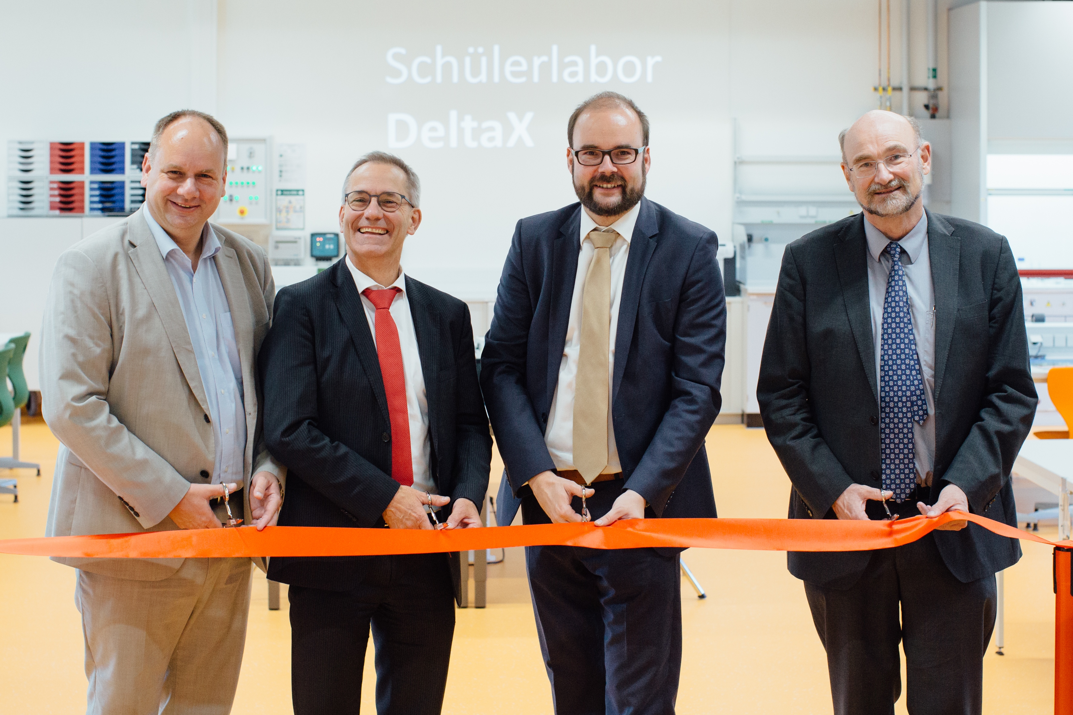 Das Helmholtz-Zentrum Dresden-Rossendorf (HZDR) nahm am Dienstag, 30. Oktober, den neuen Labortrakt des Schülerlabors DeltaX für 1,5 Mio. Euro in Betrieb. Das symbolische Band durchschnitten der sächsische Staatsminister für Kultus Christian Piwarz, der Unterabteilungsleiter für Großgeräte und Grundlagenforschung im Bundesministerium für Bildung und Forschung, Dr. Volkmar Dietz, Oberbürgermeister Dirk Hilbert und Prof. Roland Sauerbrey, Wissenschaftlicher Direktor des HZDR. Bei den anschließenden Laborführungen stellten Schüler den über 60 Gästen die neuen Möglichkeiten am DeltaX vor. Außerdem schloss das HZDR eine Kooperationsvereinbarung mit dem Martin-Andersen-Nexö-Gymnasium Dresden ab.
