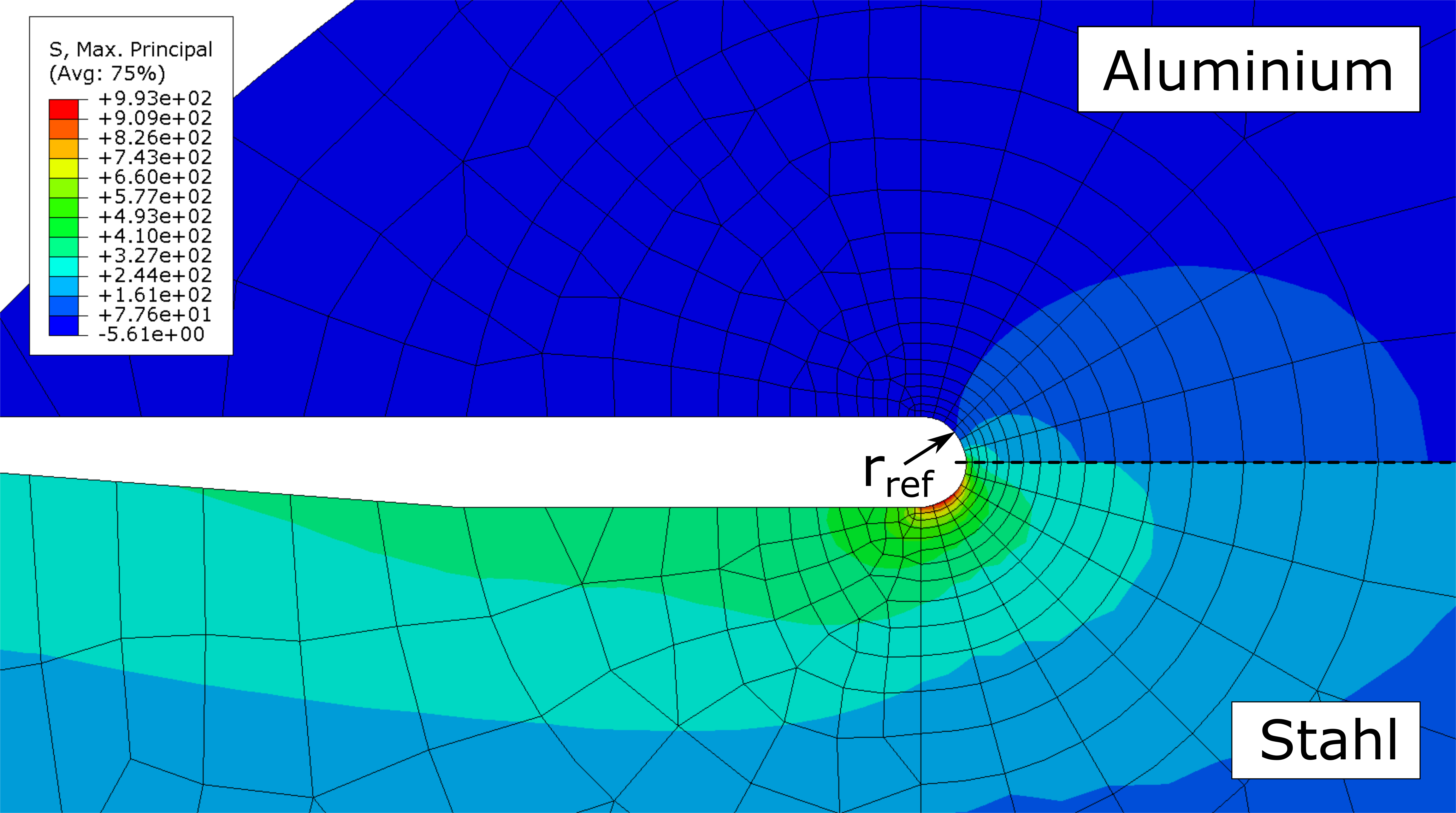 Um eine Schwingfestigkeitsbewertung vorzunehmen, baute das Forscher-Team Finite-Element-Modelle der Proben auf. Darin wurden die rissartigen Kerben mit einem standardisierten Referenzradius von 0,05 Millimeter modelliert. Eine Bewertung erfolgte mit dem Kerbspannungskonzept, das in vielen Bereichen das Standardverfahren zur Schwingfestigkeitsbewertung von Schweißverbindungen ist. Hierbei zeigte sich, dass die lokal ertragbaren Beanspruchungen bei allen Proben mit Versagen durch den Aluminiumwerkstoff vergleichbar zu konventionell, beispielweise Laser oder MIG, geschweißten Aluminiumverbindungen sind.