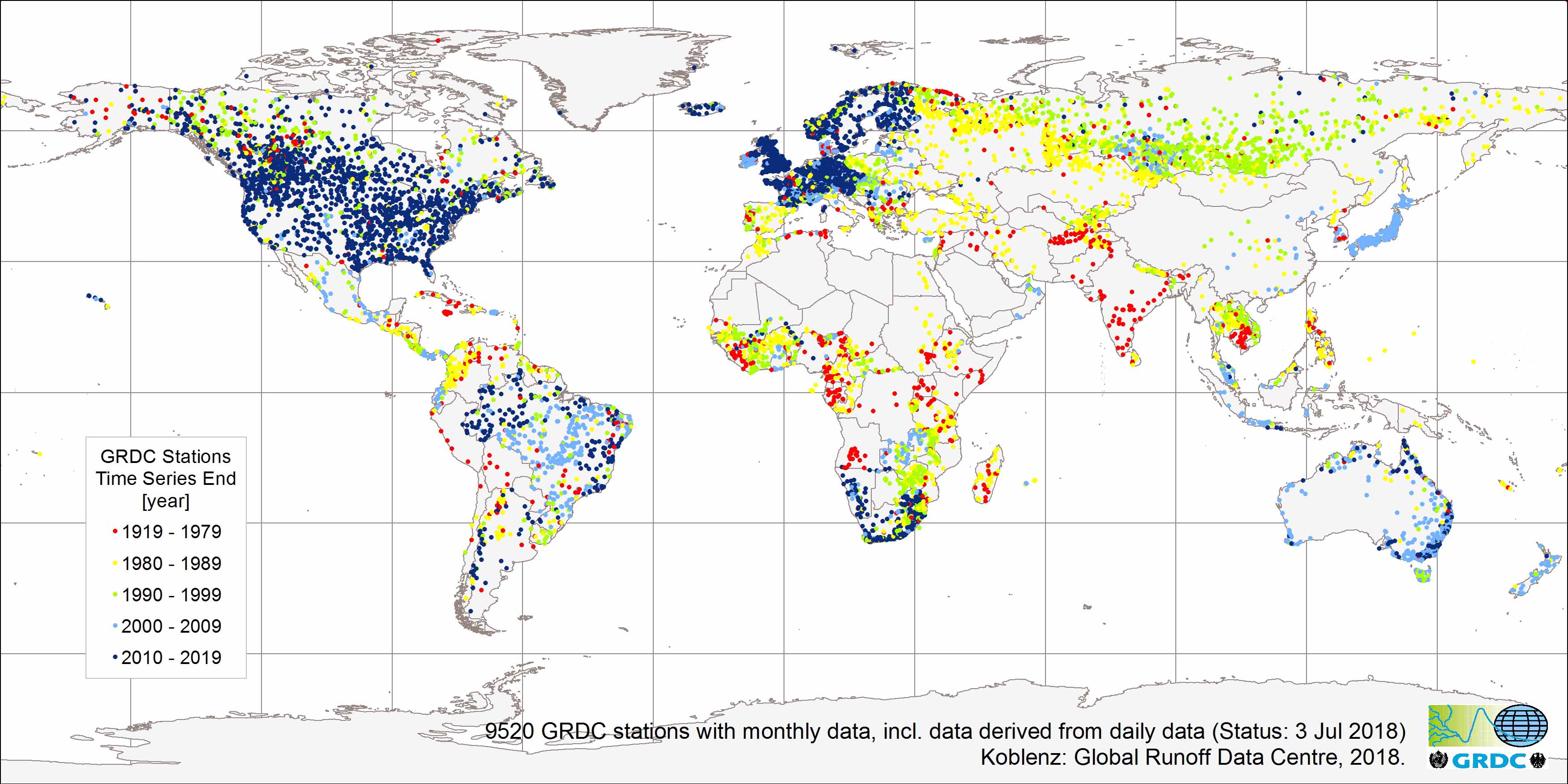 Welcher Anteil des Niederschlags gelangt in Bäche und Flüsse und wie viel fließt davon in welcher Zeit schließlich ins Meer? Hauptaufgabe des GRDC ist die weltweite Beschaffung, Harmonisierung, Speicherung und Bereitstellung sogenannter historischer Abflussdaten. Historische Daten sind in der Hydrologie keine „veralteten“, sondern nach der Messung von den jeweiligen nationalen Eignern geprüfte und gegebenenfalls korrigierte Werte. Das macht die Daten für Wissenschaft und anwendungsorientierte hydrologische und klimatologische Studien besonders wertvoll. Das Weltdatenzentrum verwaltet Zeitreihen von täglichen und monatlichen Abflusswerten, die an rund 10.000 Messstationen erfasst werden. Insgesamt umfasst die Datenbank Messwerte aus rund 415.000 Abflussjahren mit einer durchschnittlichen Zeitreihenlänge von 43 Jahren. Die frühesten Daten sind über 200 Jahre alt und stammen aus dem Jahr 1807.