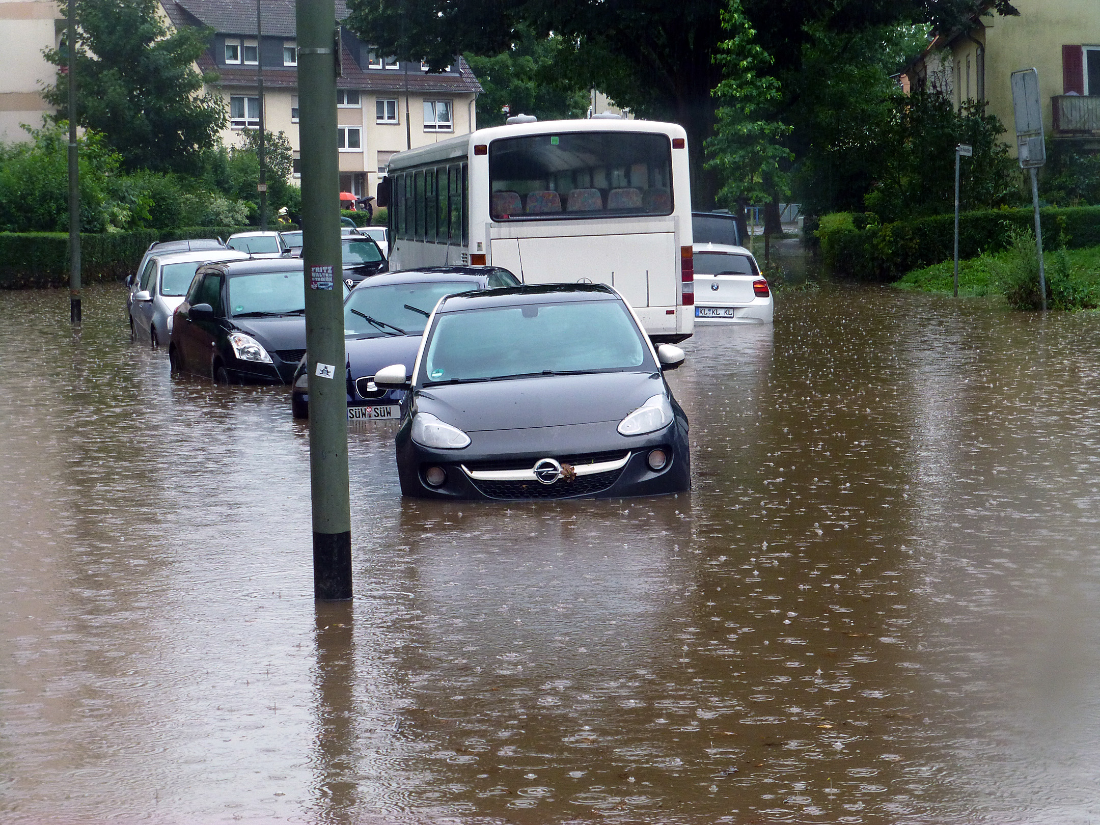 Überschwemmungen haben auch Folgen für den Straßenverkehr: Nicht nur für Auto- und Fahrradfahrer oder den Öffentlichen Personenverkehr (ÖPNV) steigt beispielsweise das Unfallrisiko, sondern auch Feuerwehr, Polizei und Rettungskräfte haben bei Starkregen oftmals Probleme, schnell zu einem Einsatzort zu gelangen.