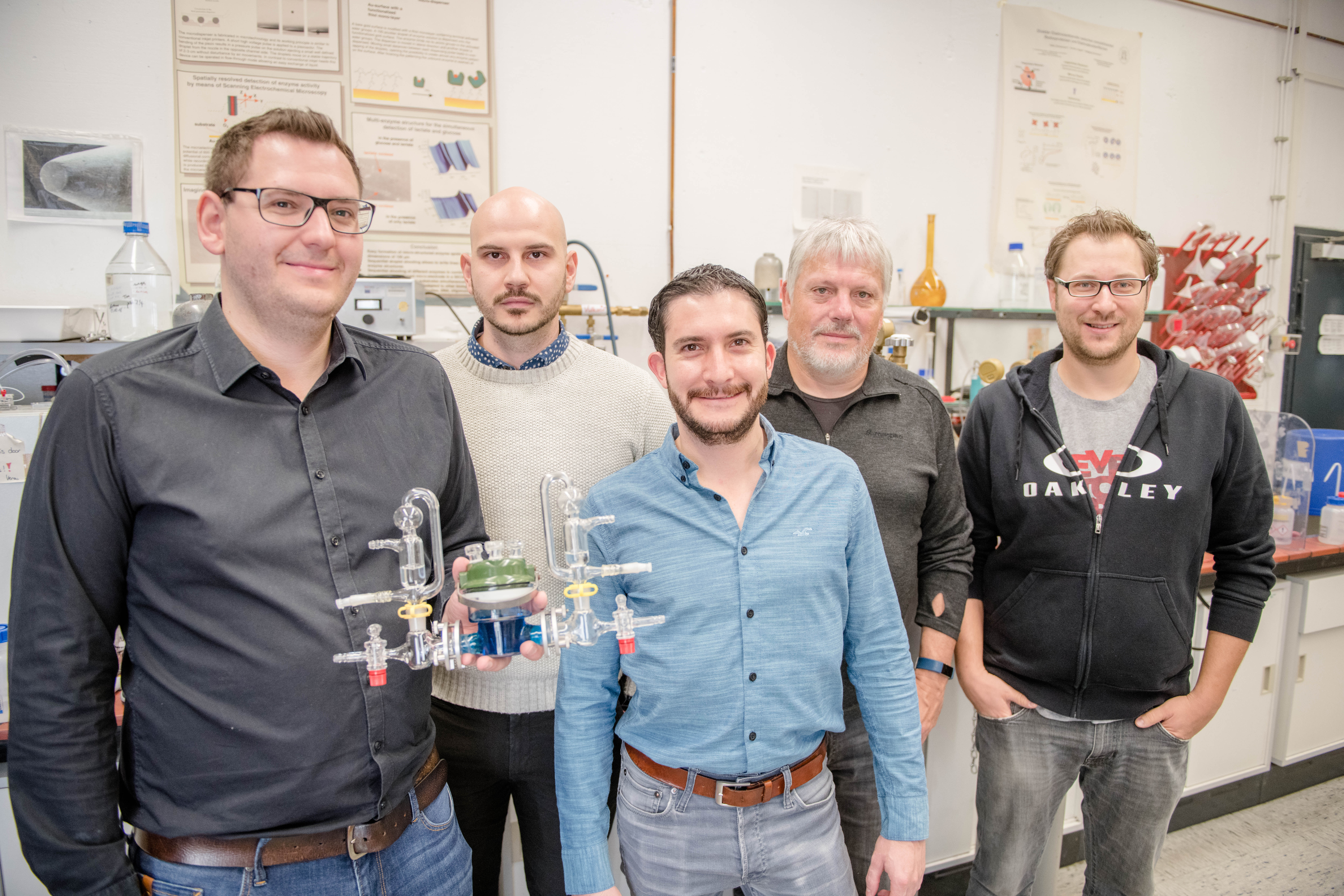 Die Bochumer Chemiker vom Zentrum für Elektrochemie haben in den vergangenen Jahren ein Redoxpolymer entwickelt, in das sie die Hydrogenasen einbetten und vor Sauerstoff schützen können. Bislang hatten sie diese Polymermatrix jedoch nur auf ebenen Elektroden getestet, nicht auf porösen dreidimensionalen Strukturen, wie sie Gasdiffusionselektroden besitzen.