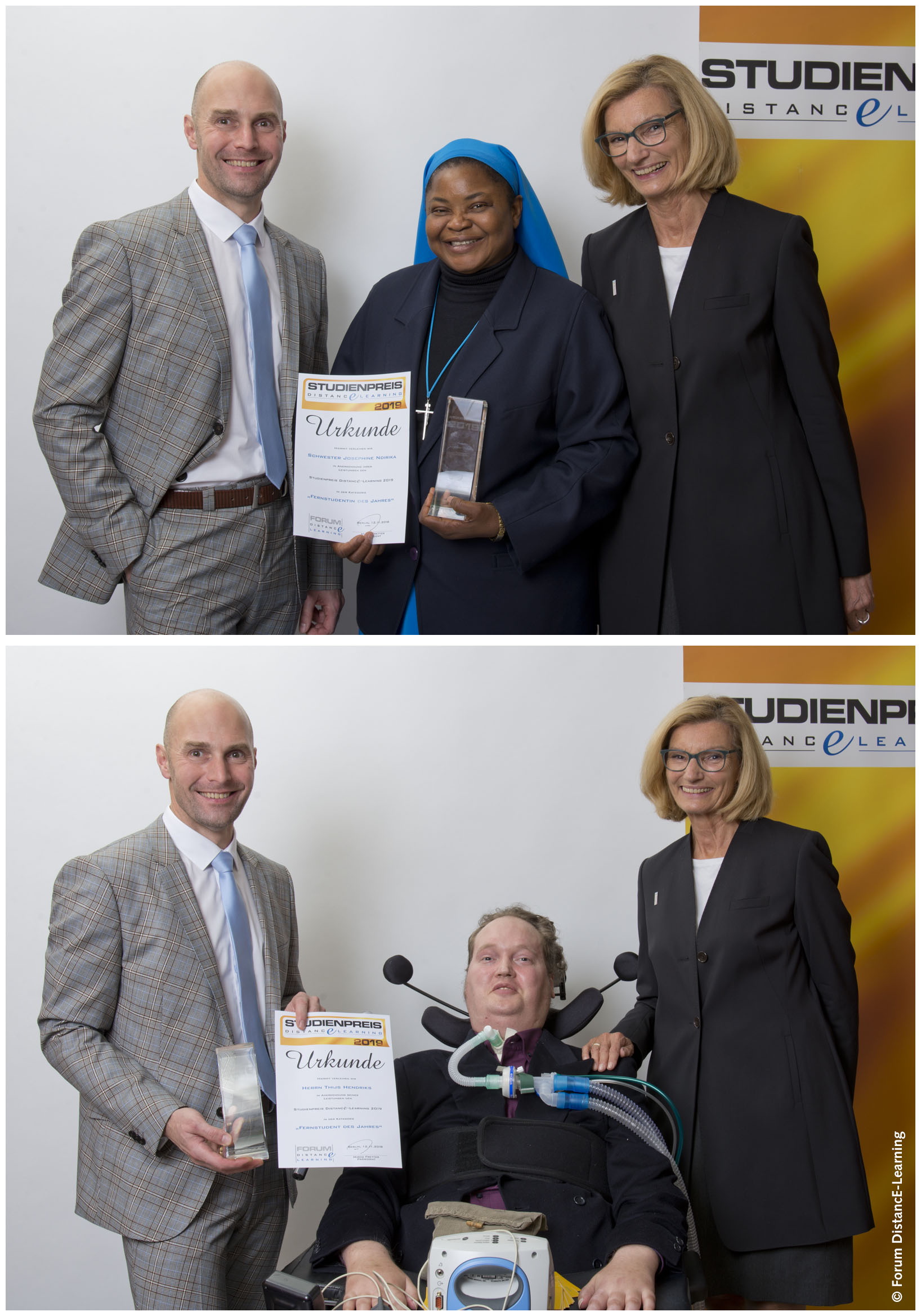 Schwester Josephine Ndirika und Thijs Hendriks, beide erfolgreiche Absolventen der APOLLON Hochschule der Gesundheitswirtschaft, haben den Studienpreis des Fachverbands Forum DistancE-Learning Fernstudentin und Fernstudent des Jahres gewonnen. Dieser honoriert nicht nur Bestnoten, sondern auch nachgewiesenen beruflichen Erfolg dank Fernstudium und die Bewältigung schwieriger Lebensumstände.
