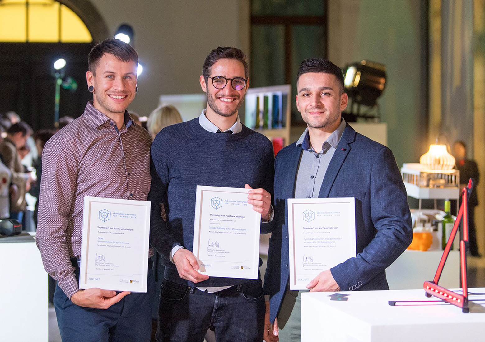 Der Produktdesigner Bastian-Jirko Spinger wurde mit dem Sächsischen Staatspreis für Design ausgezeichnet. Zwei weitere Absolventen der Fakultät Design erhielten Nominierungen.