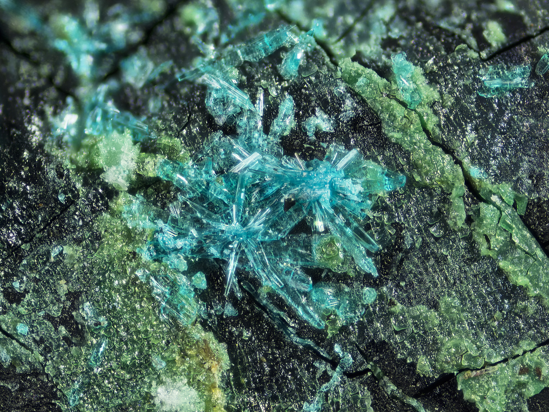 Mit dem bloßen Auge lassen sich winzige hellblaue Lamellen erkennen. Es handelt sich um ein organisches Mineral, das zur Gruppe der Oxalate gehört, in diesem Fall ein Kupferoxalat-Hydrat mit der chemischen Formel Cu2(C2O4)(OH)2•2H2O, das im monoklinen Kristallsystem kristallisiert. Es ist sehr selten und die wenigen Proben, die nicht für die zur Bestimmung der neuen Art erforderlichen Analysen geopfert wurden, befinden sich in den Sammlungen des MUSE und der Fakultät für Chemie der Universität Mailand UNIMI. Fiemmeit findet sich im Inneren der inkohlten Baumstämme, die sehr häufig in der Basalschicht des Grödner Sandsteins, einer Sedimentformation, die im Oberen Perm vor ca. 260 Millionen Jahren aus einer Flusslandschaft entstand, vorkommen. Ein stratigraphisches Intervall zwischen Perm und Trias, das die Geologen des MUSE und der Universität Innsbruck schon länger aufs Korn genommen und zum Gegenstand eines Forschungsprojekts gemacht haben, das Ergebnisse von internationaler Bedeutung im Bereich der Paläontologie hervorgebracht hat.