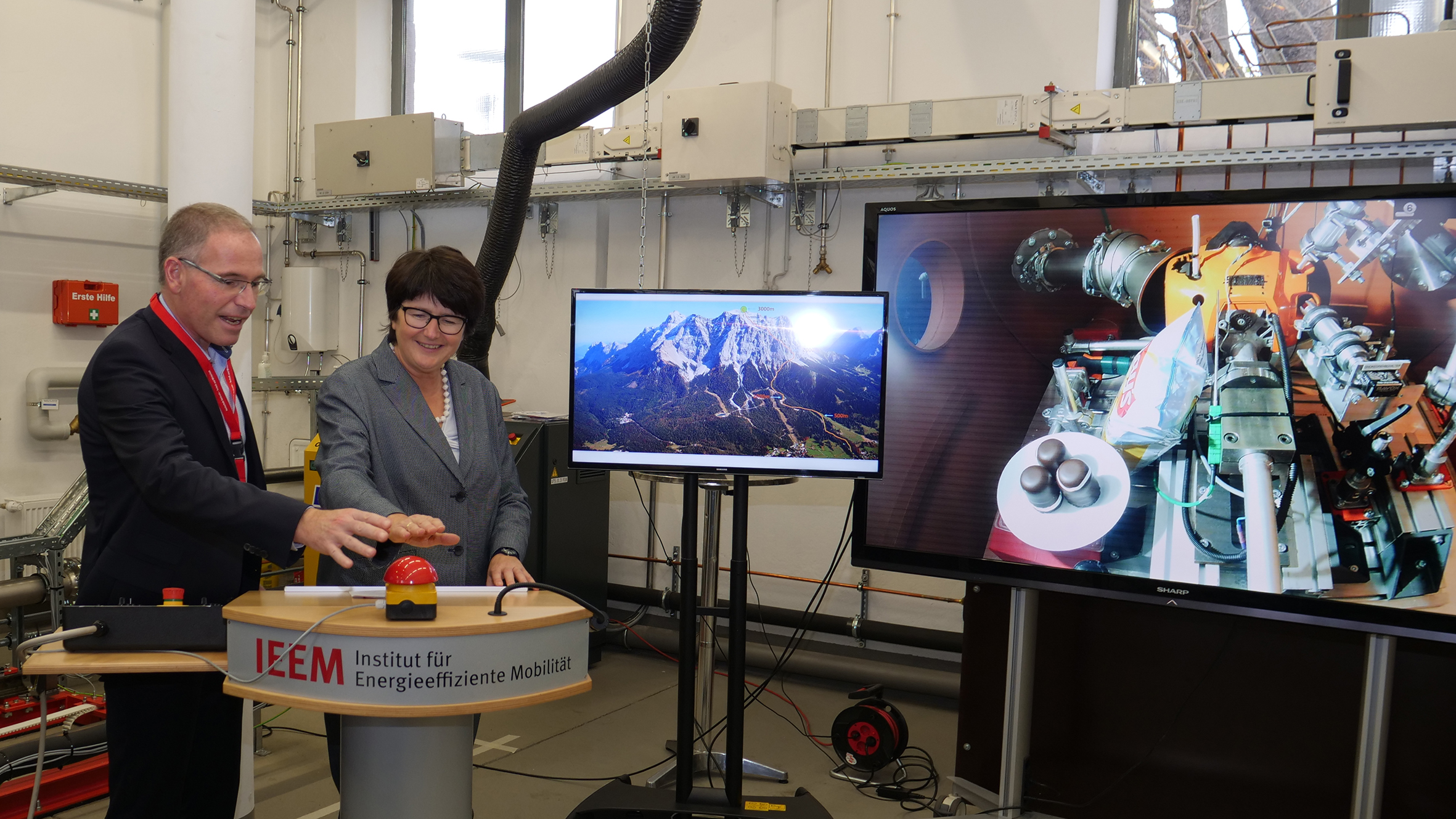 Vor deren Markteinführung gilt es auch ihren Einsatz bei üblichen Klimabedingungen wie beispielsweise der Holzernte im Winter und in großen Höhen (Arbeiten in den Bergen) zu untersuchen. Durch Mittel des Bundesministeriums für Ernährung und Landwirtschaft (Projektträger FNR) von rund 300 000 € konnte dazu am IEEM ein Klima- und Höhensimulationsprüfstand entwickelt und aufgebaut werden, an dem die Motoren und Geräte im Temperaturspektrum von arktischer Kälte (-20 °C) bis zu tropischer Hitze (+40 °C) sowie hinsichtlich der Luftdruckbedingungen entsprechend bis zu 3 000 m Höhe untersucht werden können. Zum erfolgreichen Abschluss des Forschungsprojekts „Bio-Gerätebenzin für Kleinmotoren“ konnte am heutigen 15. November 2018 der neue Klima- und Höhensimulationsprüfstand für Motoren und Geräte am IEEM der Hochschule Karlsruhe an ihrer Außenstelle auf dem Hochschulcampus Bruchsal feierlich in Betrieb genommen werden.