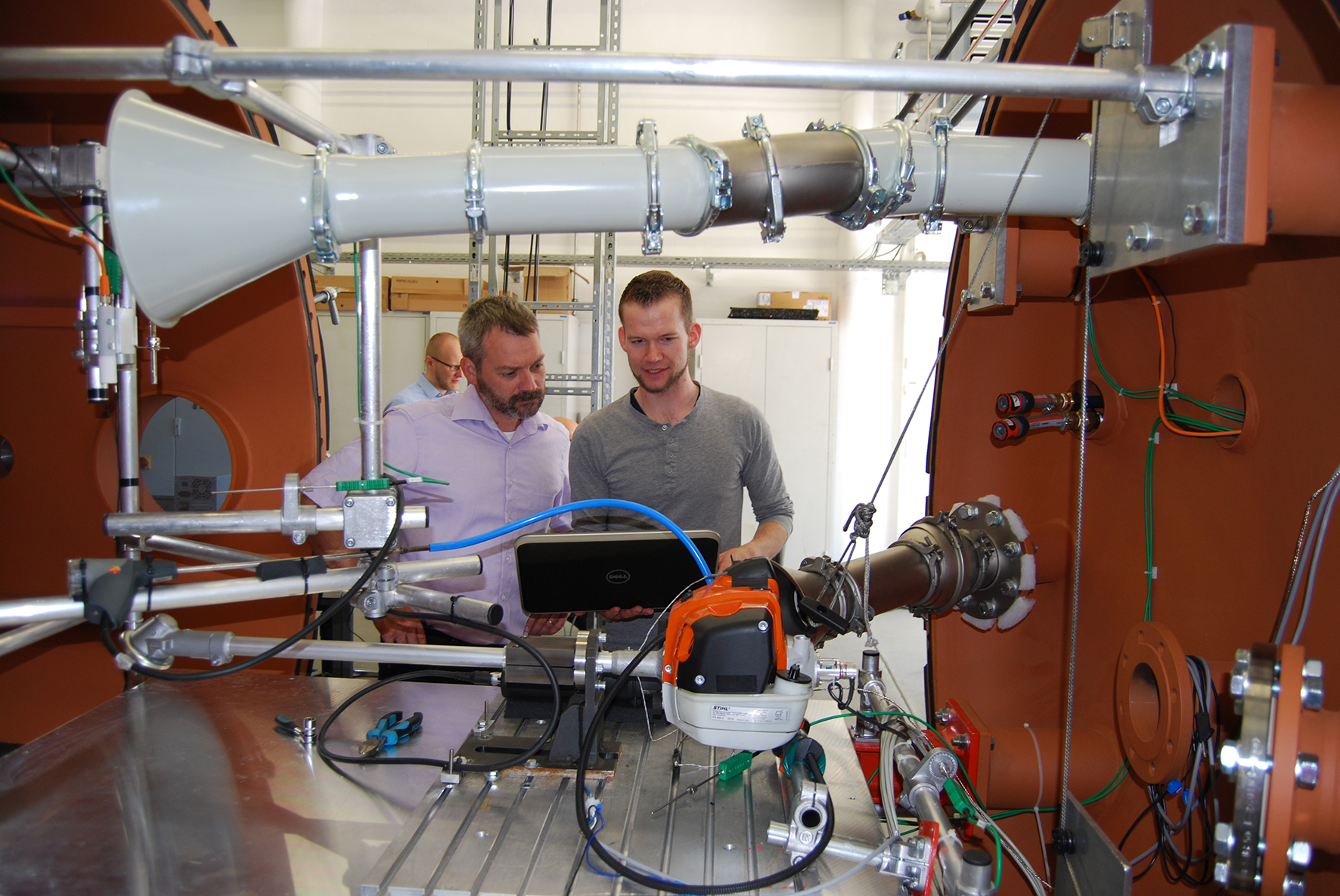 Neuer Klima- und Höhensimulationsprüfstand für Motoren und Geräte kann am Institut für Energieeffiziente Mobilität der Hochschule Karlsruhe in Betrieb genommen werden