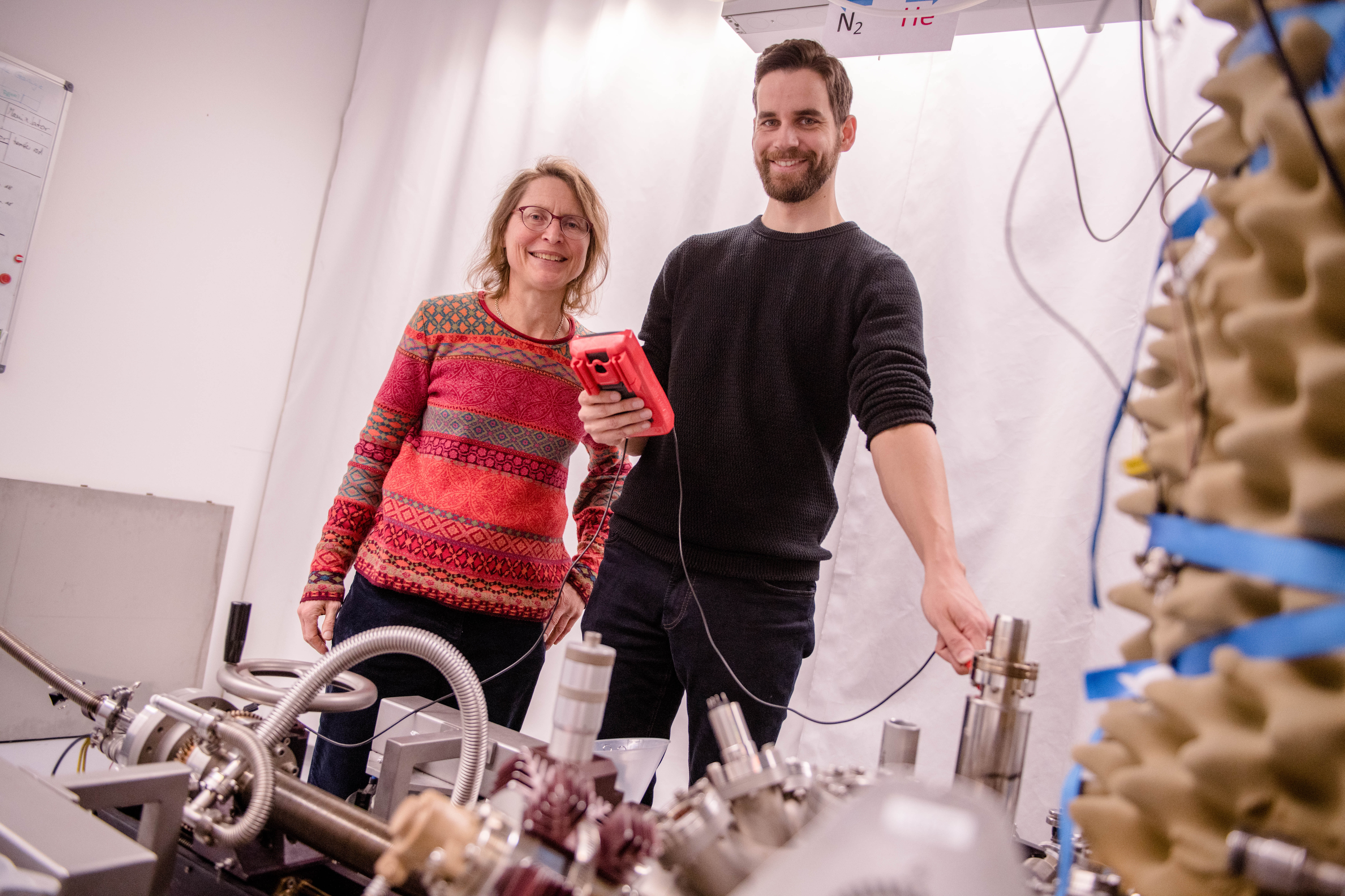 Die Forscherinnen und Forscher fixierten die organischen Moleküle auf einer speziellen Silberoberfläche. Darauf bildeten die funktionellen Gruppen der Moleküle Ketten. „Diese Struktur entspricht einem eindimensionalen Kristall“, erklärt Lucht. Dann gaben die Wissenschaftler eine geringe Menge Wasser hinzu, das sich an definierten Positionen an die organischen Moleküle anlagerte. Schließlich erwärmten sie das System auf minus 193 Grad Celsius, wobei die Kristallstruktur komplett verloren ging.