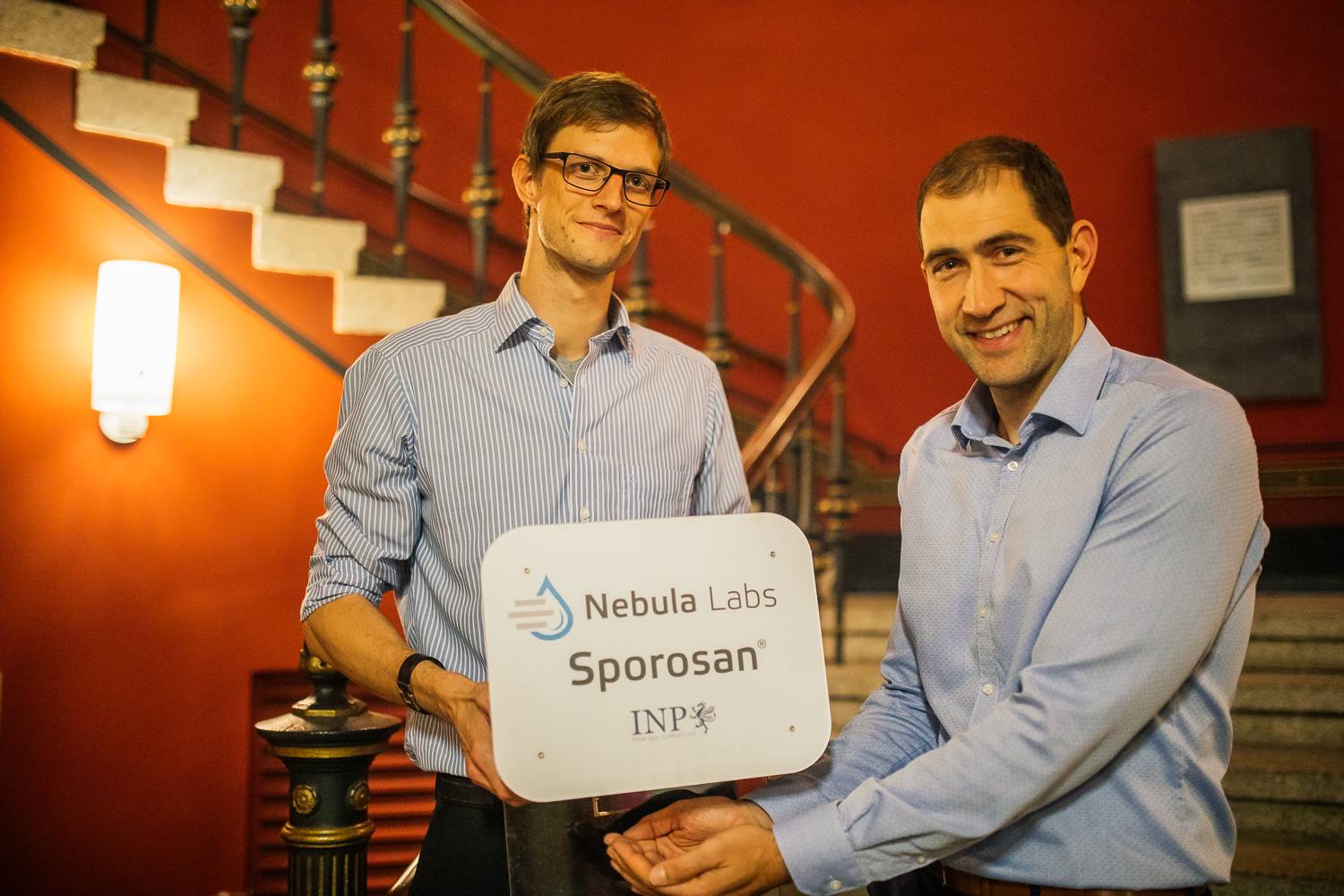 Das mit 1.500 Euro prämierte Gewinnerteam „Nebula Labs“ hat sich zum Ziel gesetzt, den Handdesinfektionsmarkt zu revolutionieren. Die weite Verbreitung multiresistenter Keime in Krankenhäusern und Pflegeeinrichtungen wird seit vielen Jahren als kritisch eingestuft. Die zum Patent angemeldete Technologie basiert auf der plasmagestützten Erzeugung kurzlebiger Wirkstoffe. Diese töten selbst sporenbildende Keime – gegen welche kein bislang zugelassenes Handdesinfektionsmittel wirkt – in Sekunden ab. Die erzeugte Substanz ist wasser-basiert, geruchsfrei, nicht atemwegsreizend, nicht brennbar, versprühbar und unbedenklich für die Umwelt.