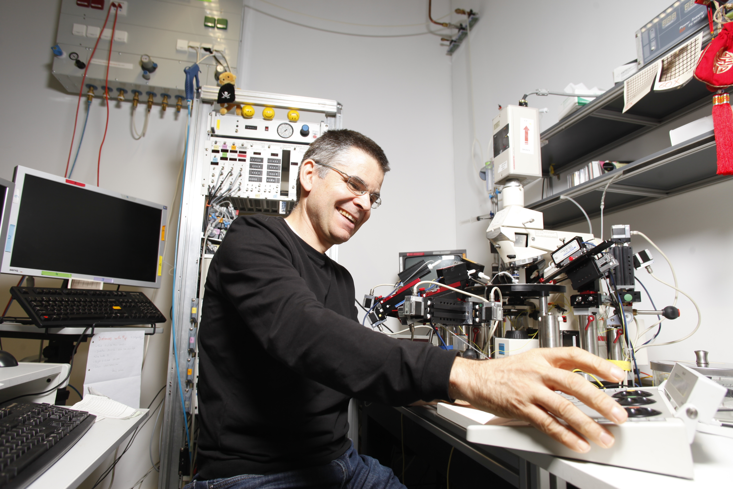 Peter Jonas untersucht die Funktionsweise neuronaler Mikroschaltkreise. Sie zu verstehen ist eine der größten Herausforderungen in den Biowissenschaften im 21. Jahrhundert, denn das menschliche Gehirn besteht aus etwa hundert Milliarden Neuronen, die an Billiarden (1015) Kontaktstellen miteinander in Verbindung stehen.